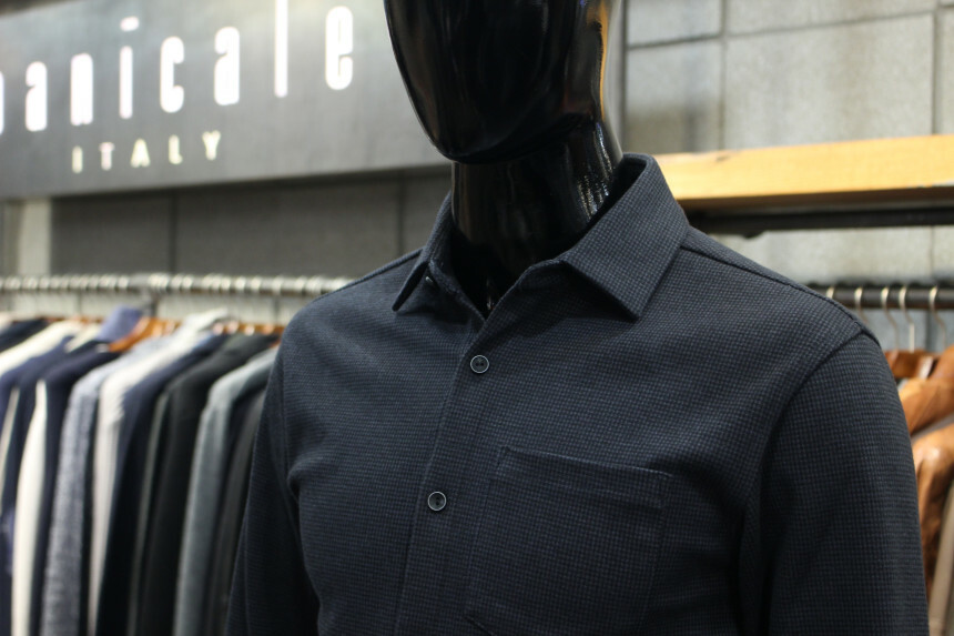 미니멀하운드투스패턴의 슬림핏윈터셔츠입니다