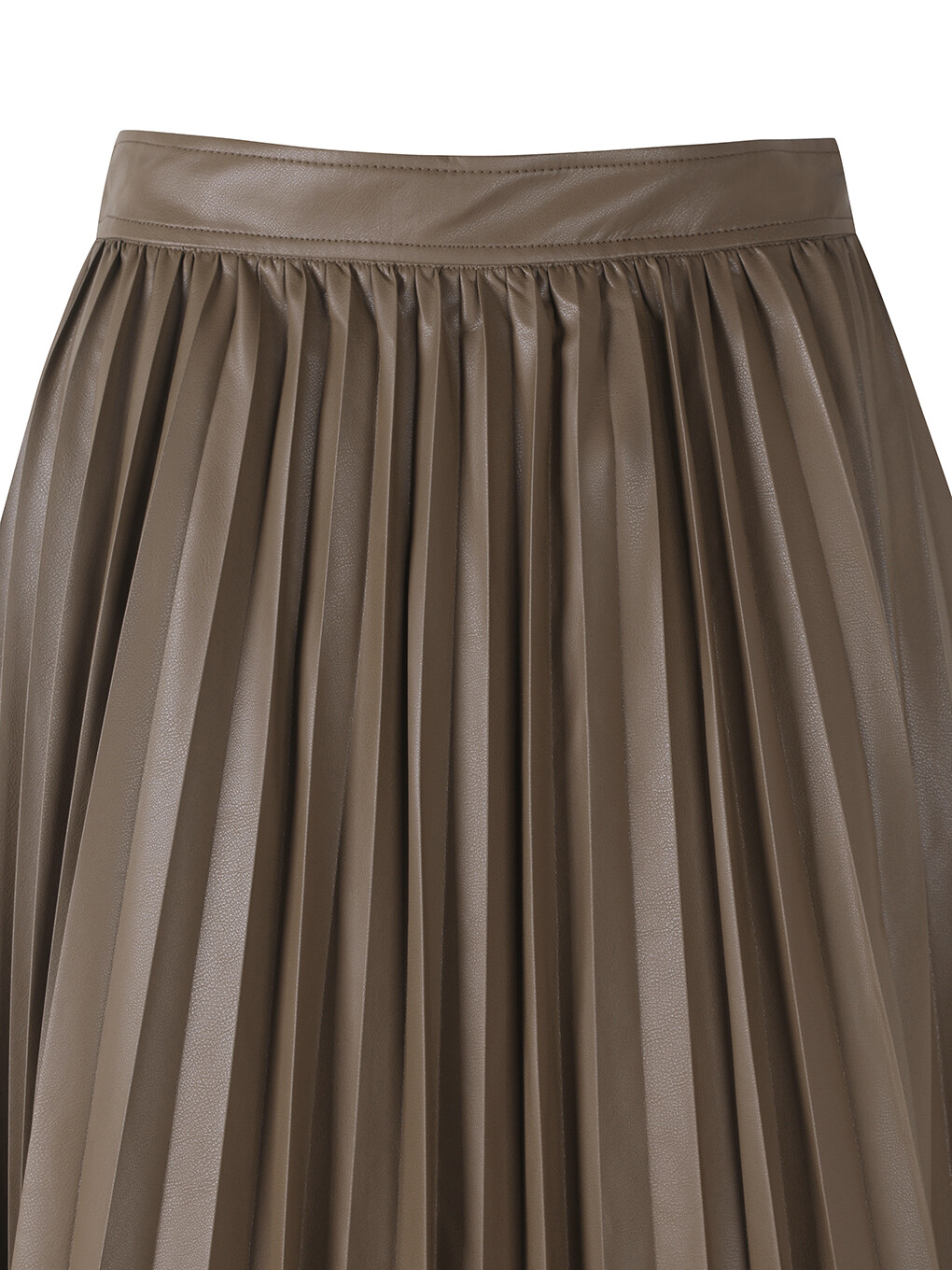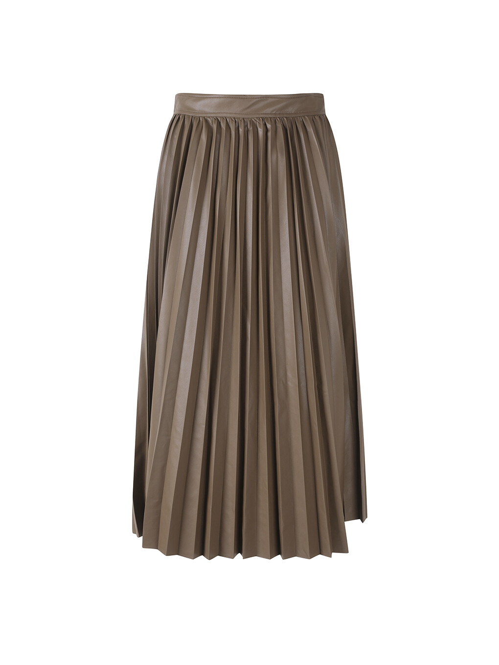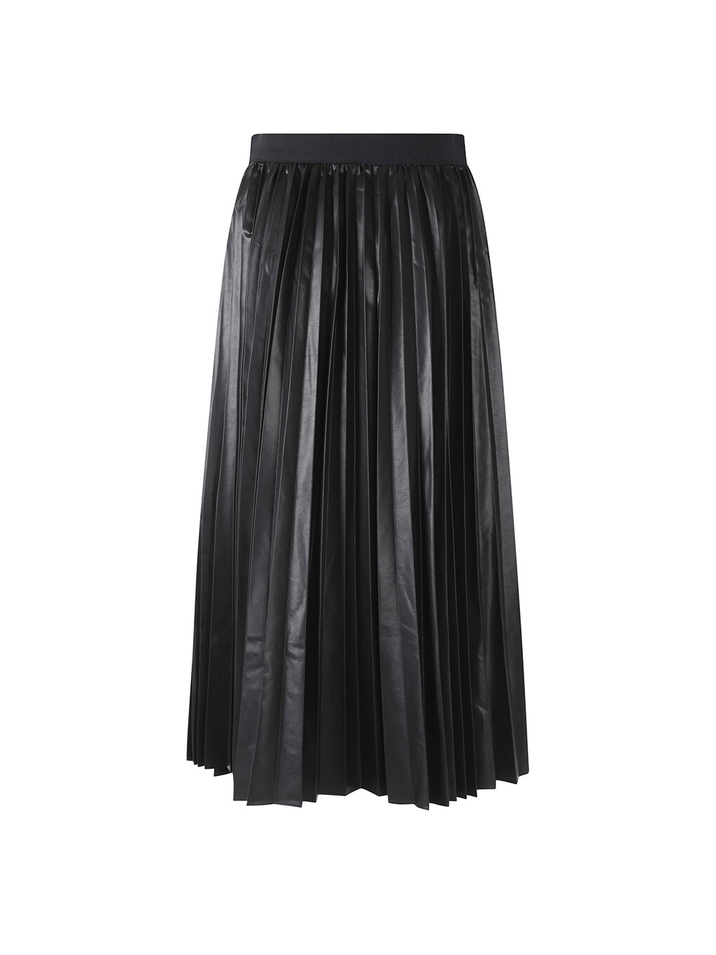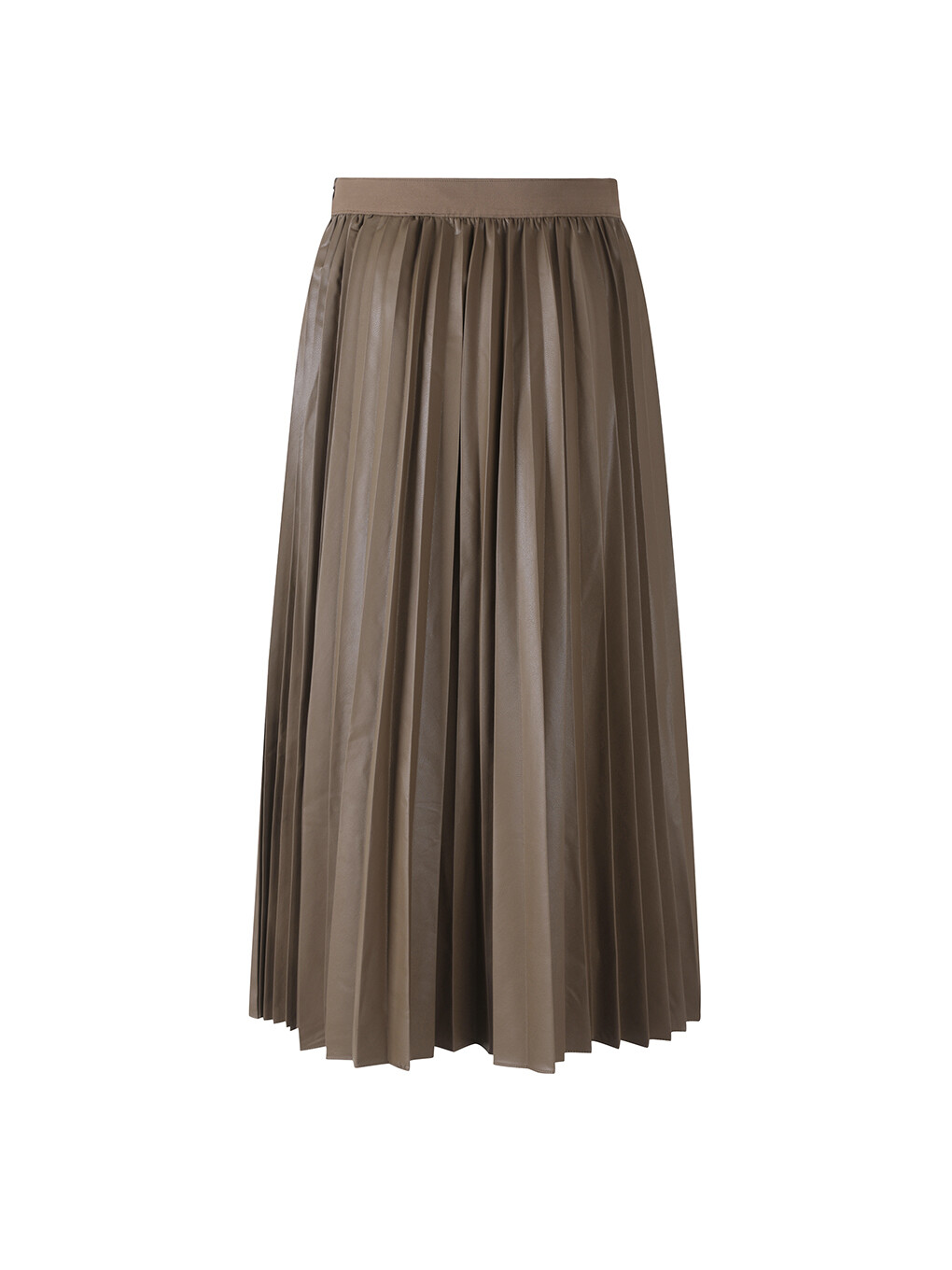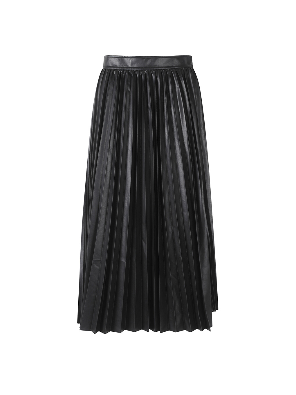 경쾌하고 캐주얼하게 제안해주는 에코레더 플리츠 롱 스커트입니다.