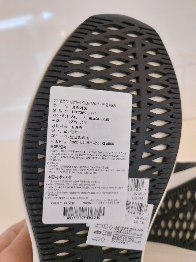 사이즈팁: 평소에 신는 구두사이즈 동일