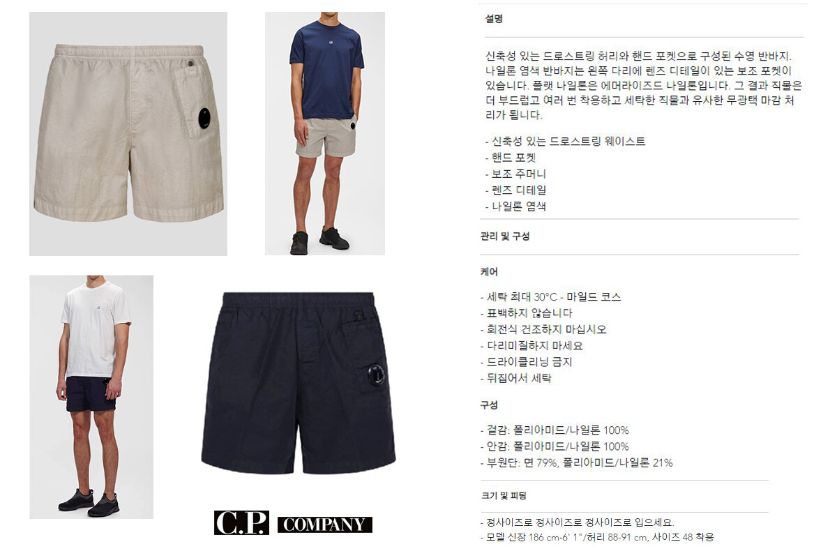■ 상품특징 - (구입당일 출발 국내배송) 씨피컴퍼니 Flatt 나일론 보조 포켓 수영 반바지 그레이 CP COMPANY 14CMBW006A 005991G 936