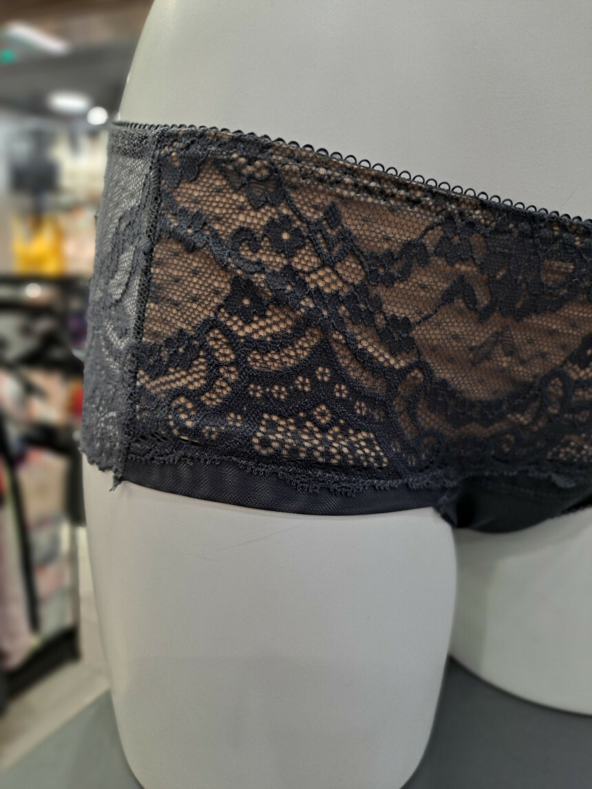 -옆선을 넓게 설계한 삼각레이스 스타일의 제품으로 힙을 안정적으로 감싸주어 편안하게 착용가능