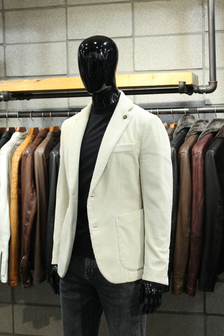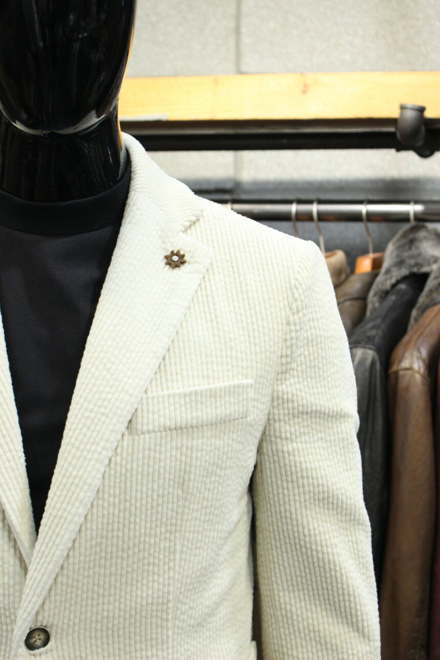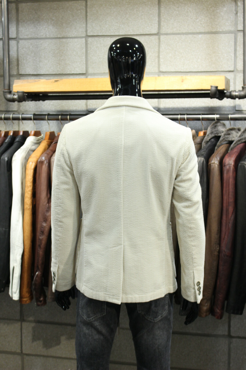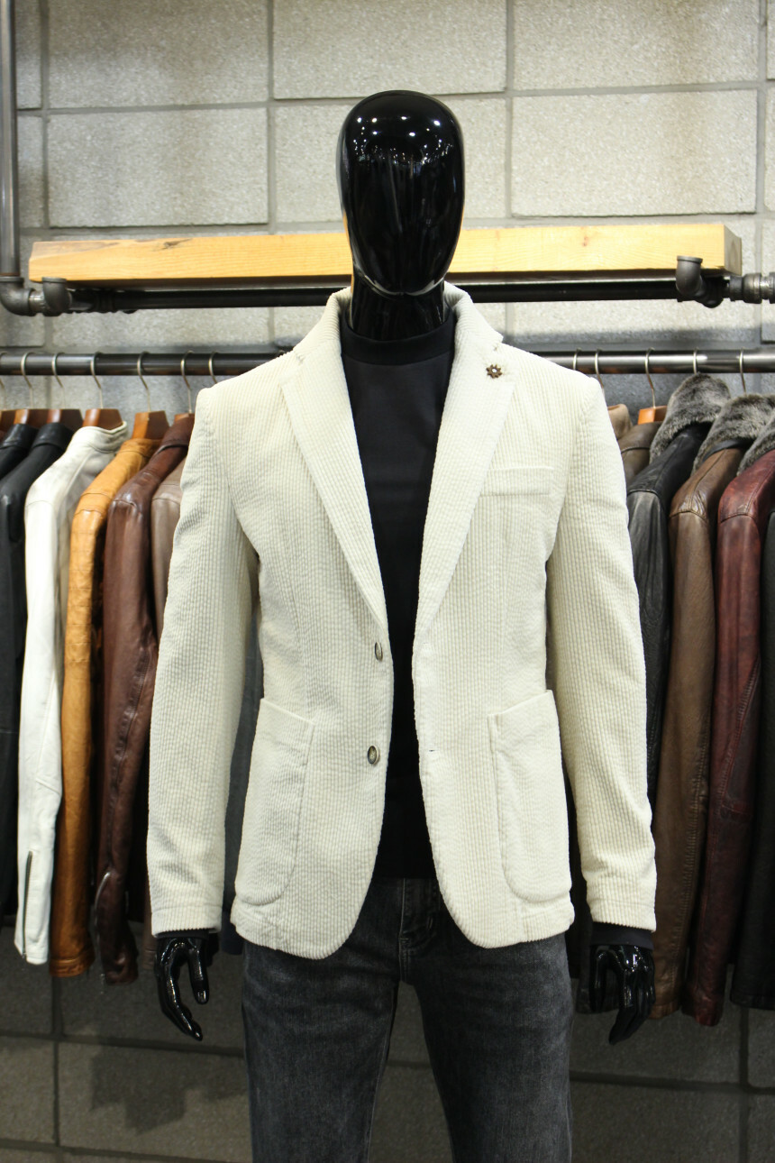 화사한 아이보리화이트컬러의 슬림핏 골덴자켓입니다
