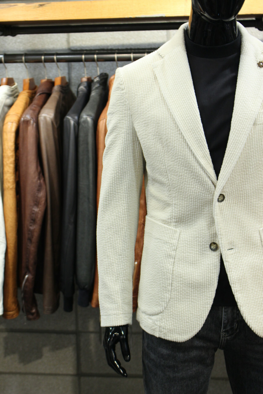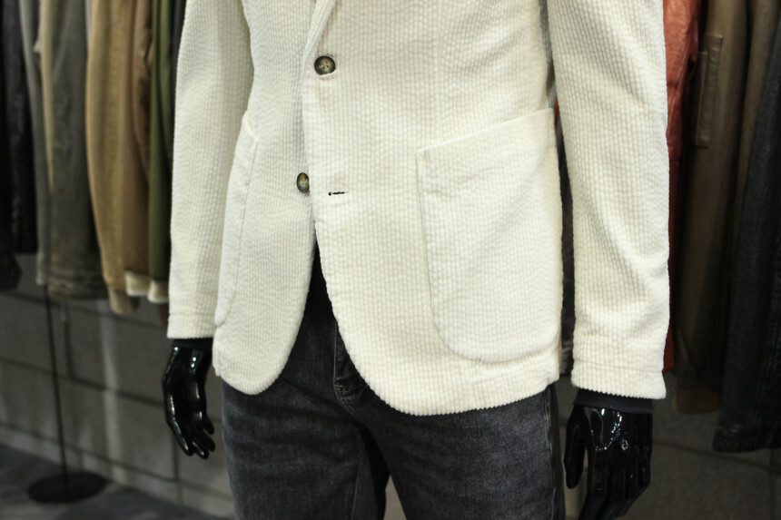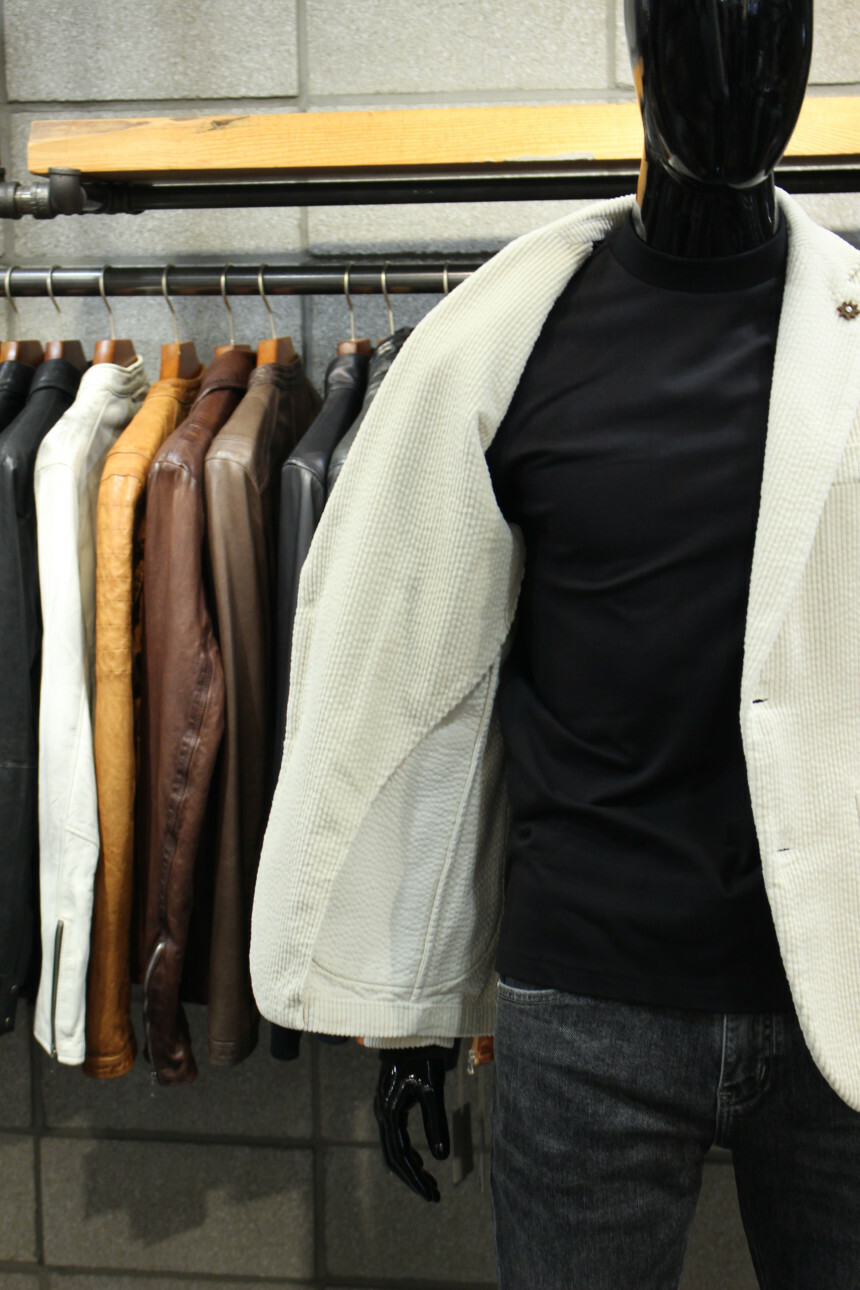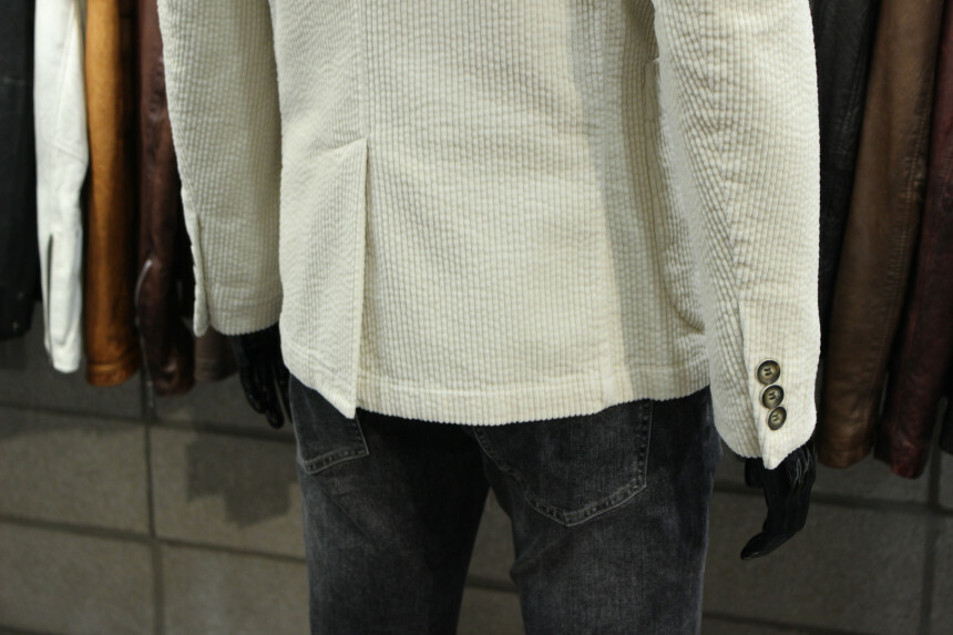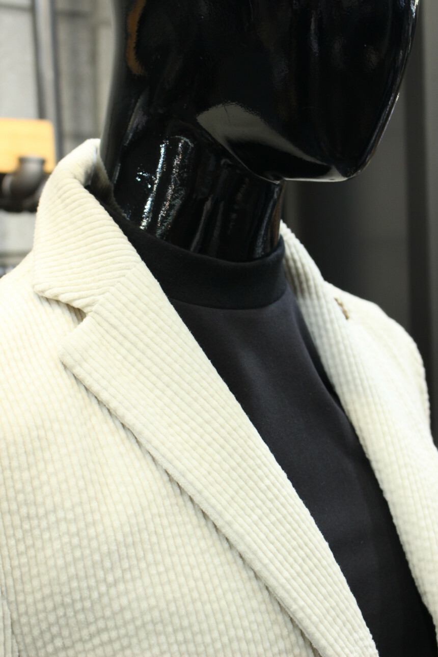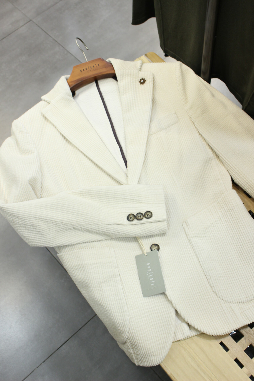 화사한 아이보리화이트컬러의 슬림핏 골덴자켓입니다