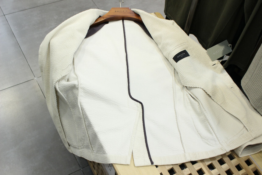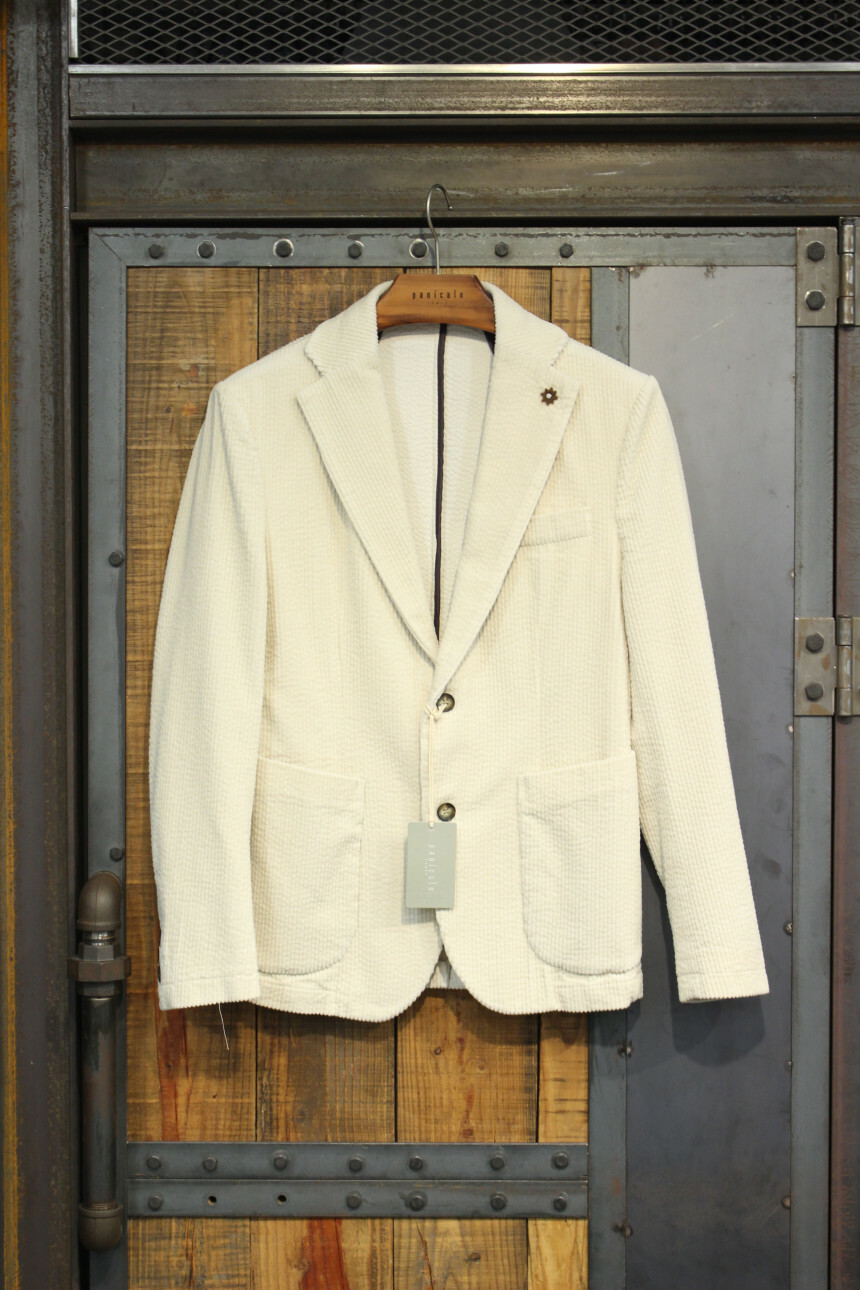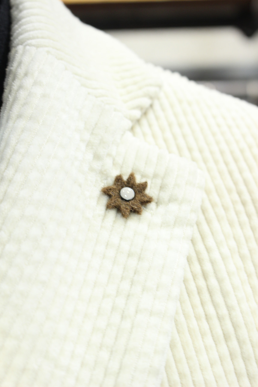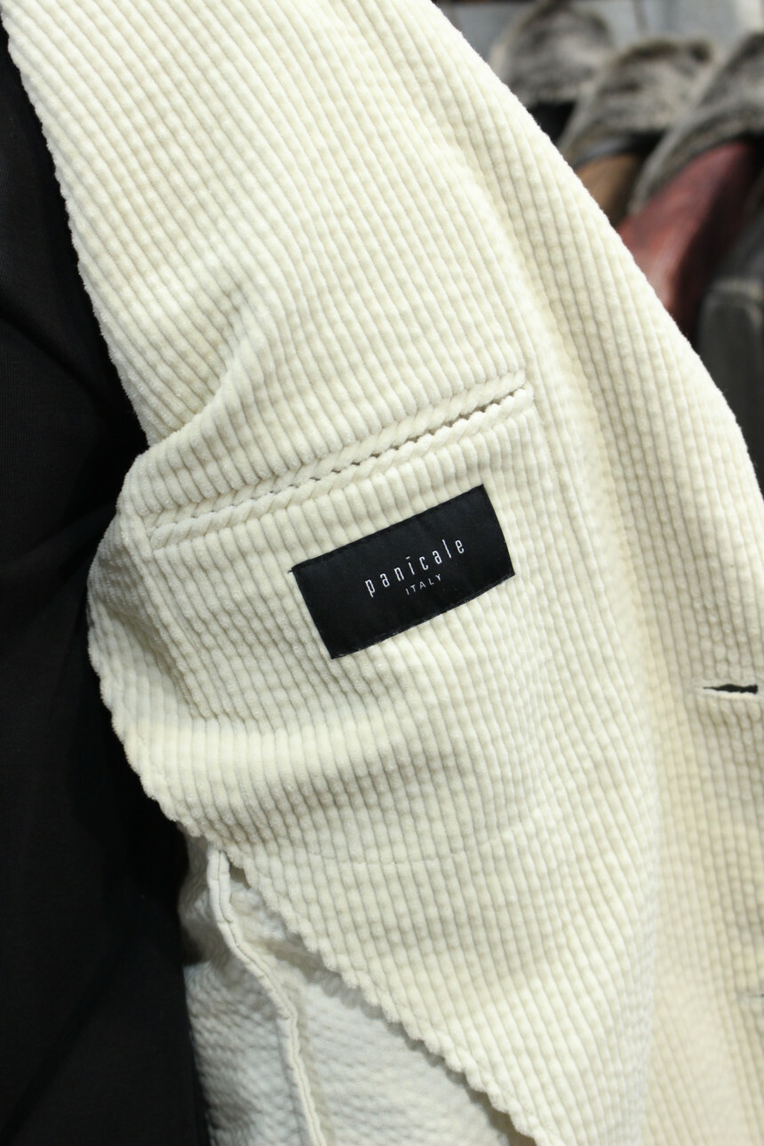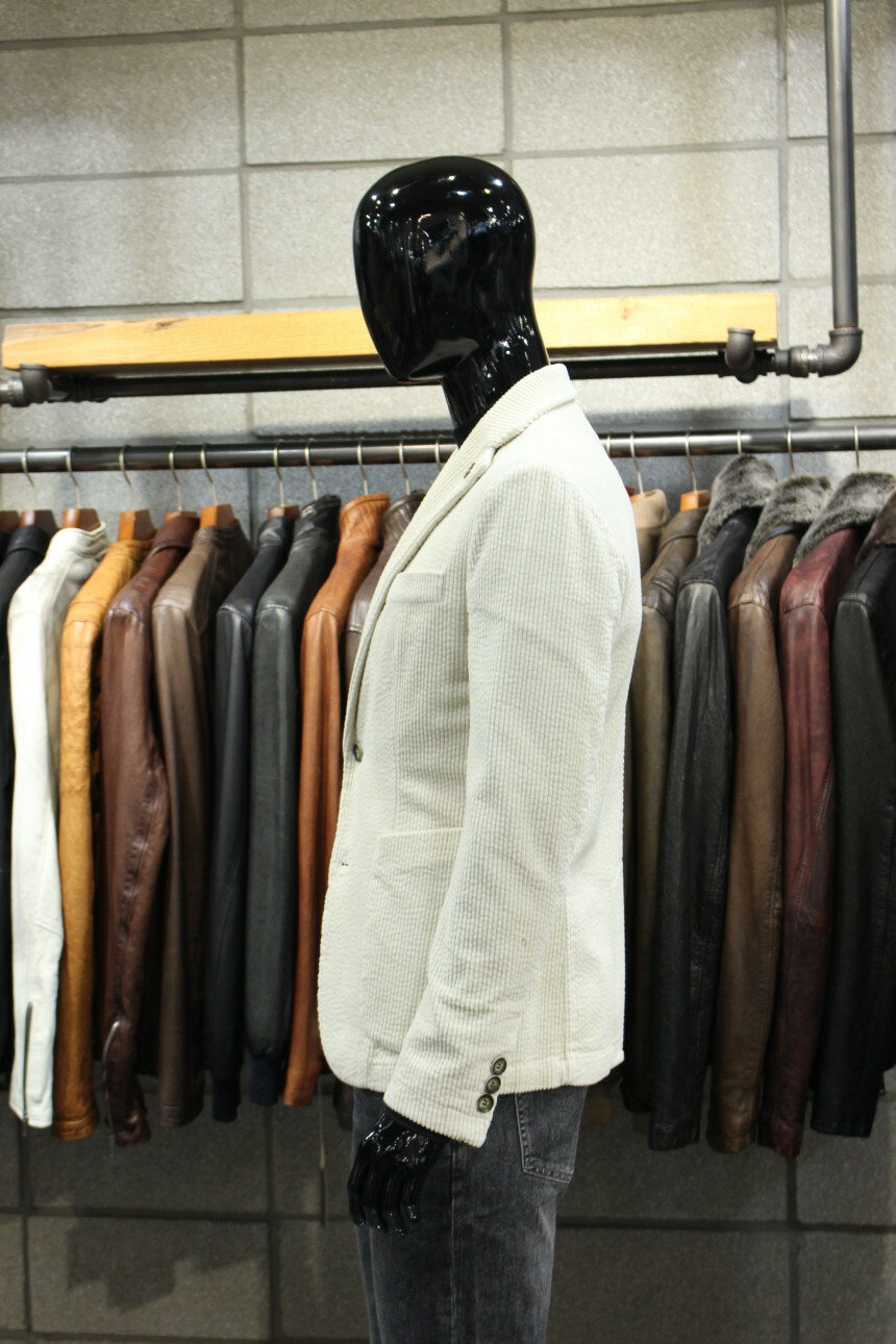 화사한 아이보리화이트컬러의 슬림핏 골덴자켓입니다