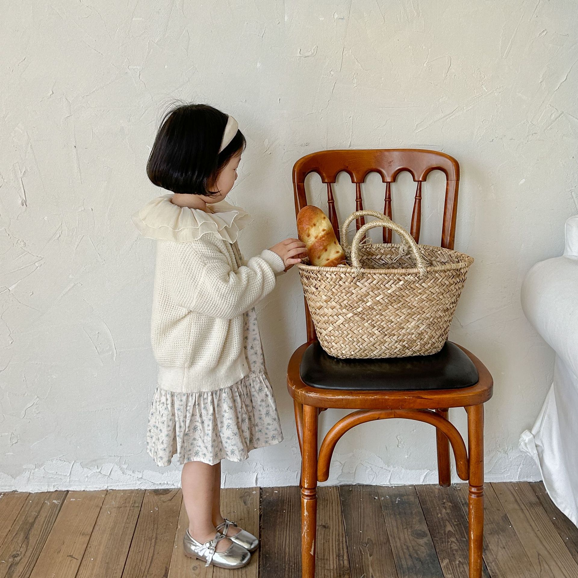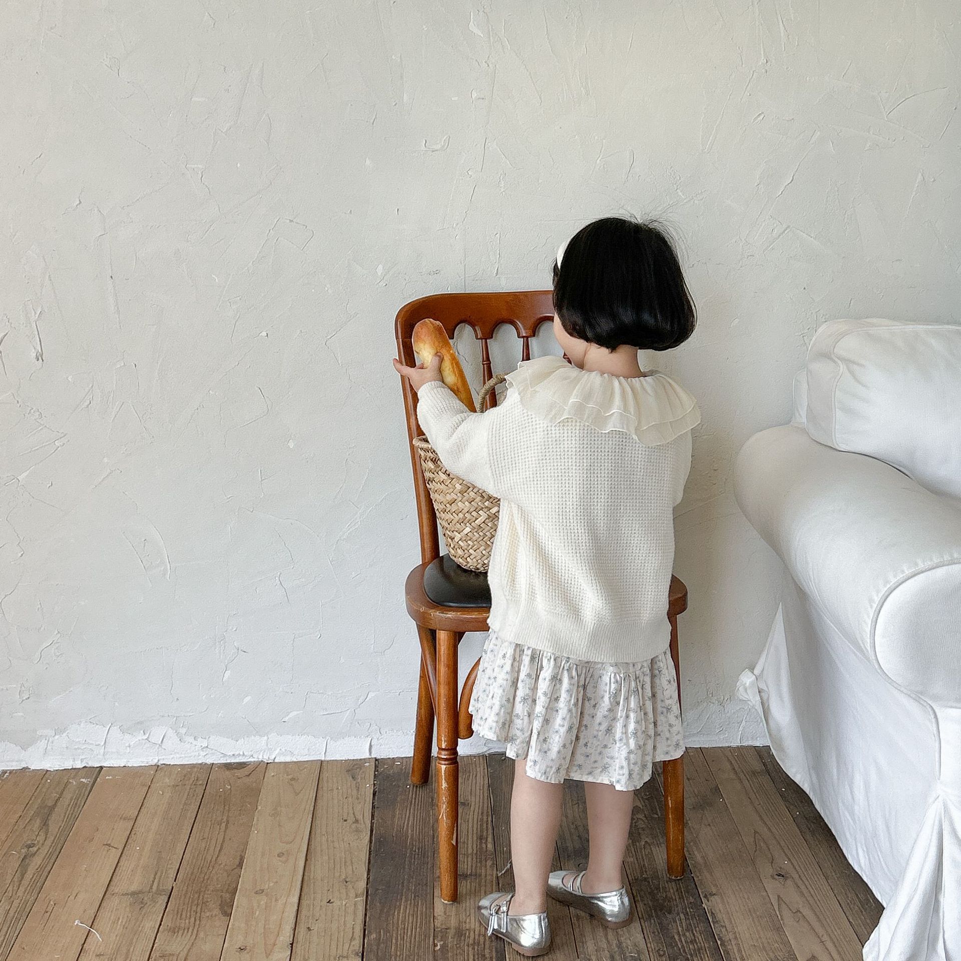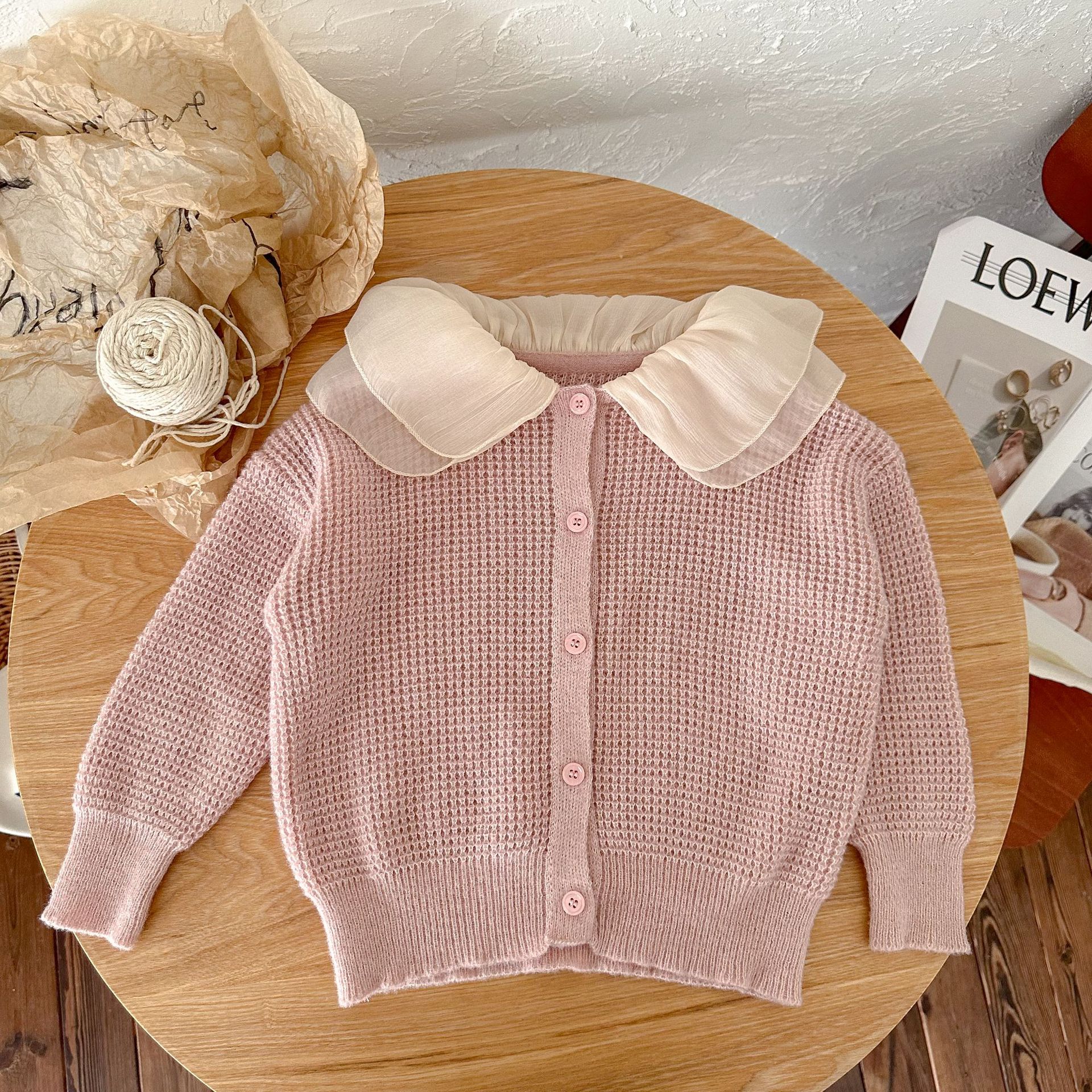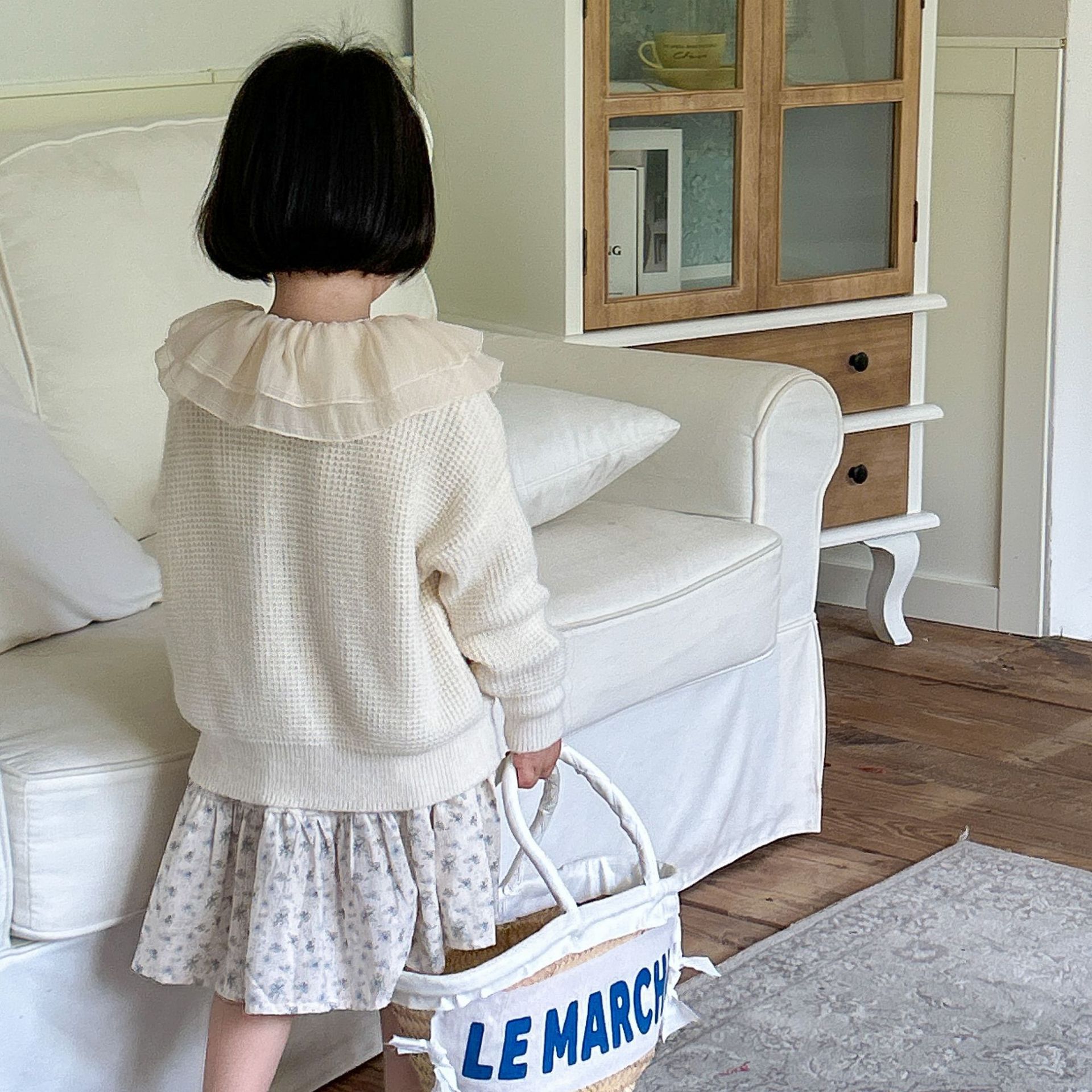 루아 쉬폰 카라 니트 가디건 R9641 색상 : 아이보리, 핑크 사이즈 : 100,110,120,130,140 소재 : 면 기타 사용연령: 37개월이상