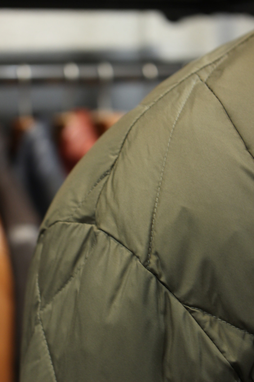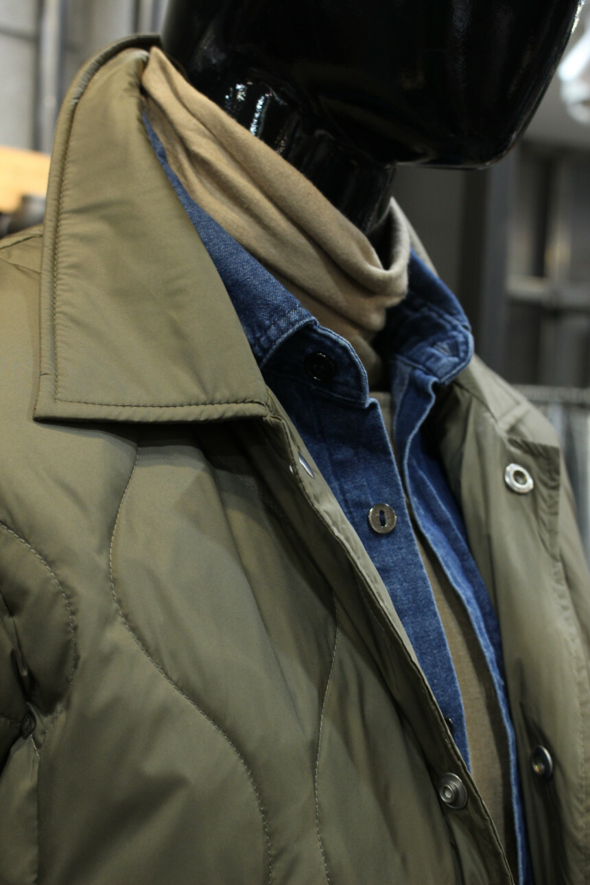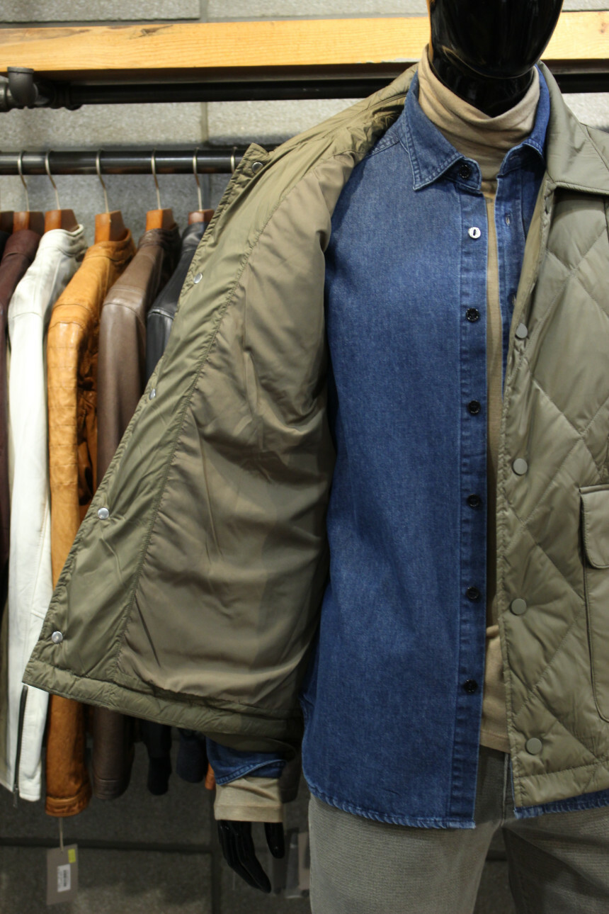 카키베이지컬러에 퀼팅패턴으로 세련되면서도 트렌디한 감성으로 늦가을부터 겨울까지 코디하기 좋습니다