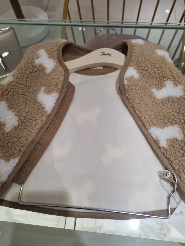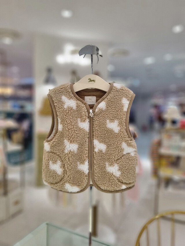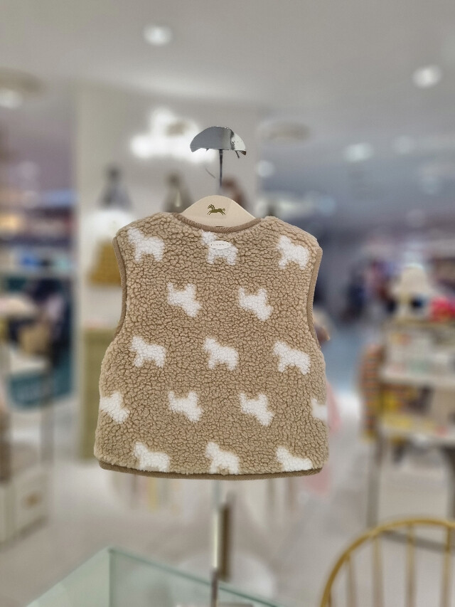 따뜻한 뽀글이 소재의 조끼입니다 안쪽은 융으로 되어있어 보온성이 좋아요
