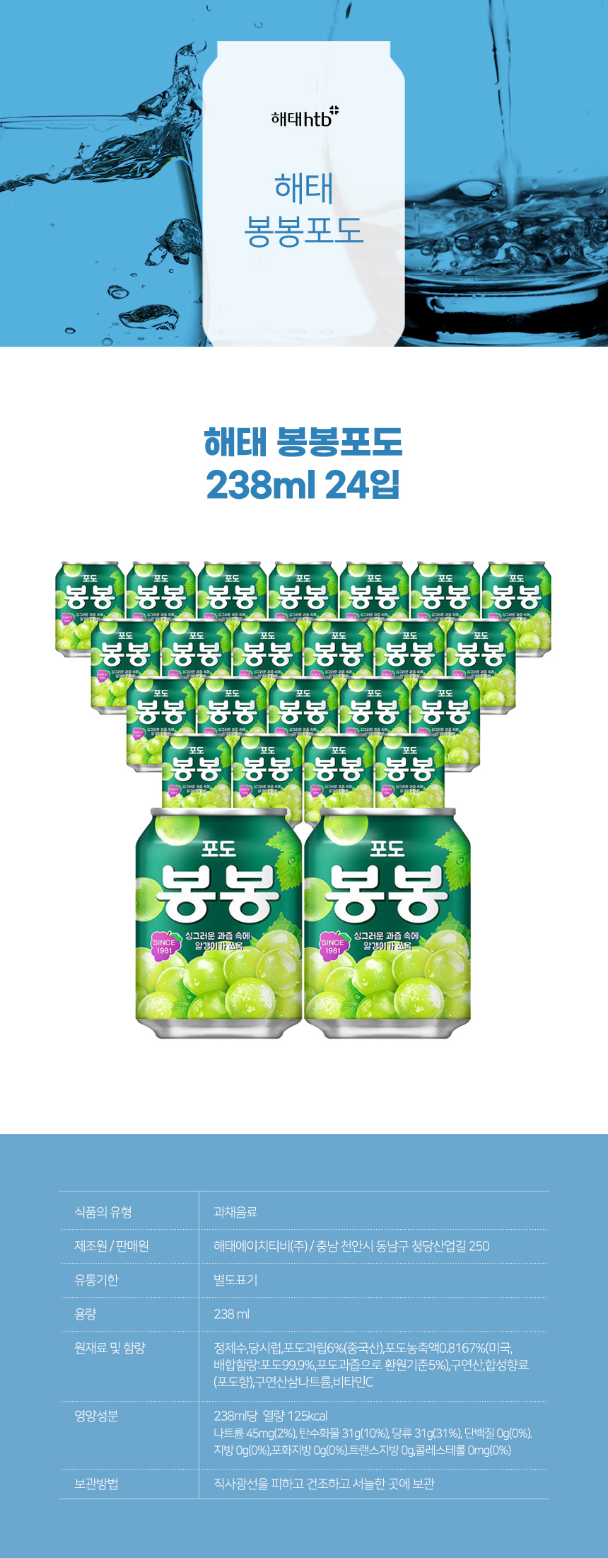 해당 상품은[ 해태 봉봉포도 238ml 24입 ] 구성의 상품입니다.