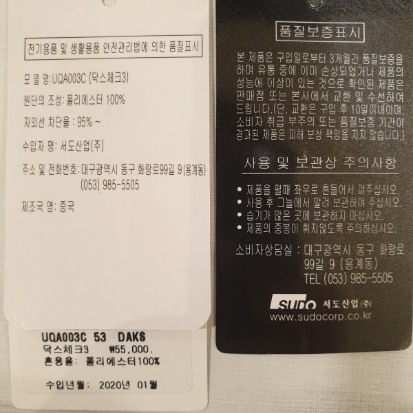 품질보증기준 : 상품에 동봉되는 품질 보증서 또는 공정거래위원회 고시 소비자 분쟁 해결 기준에 따릅니다.공정거래위원회 고시 소비자 분쟁 해결기준은 품질 보증서에 우선하여 진행합니다.