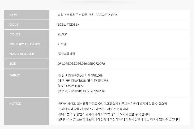 *겉감: 나일론 90%, 폴리우레탄 10%