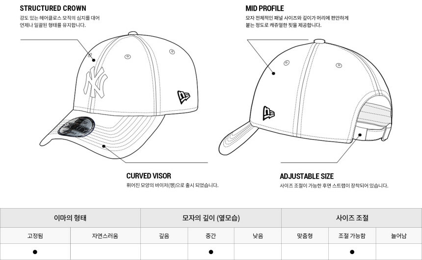 9FORTY란 ‘볼캡’의 상징 실루엣 이라고도 할 수 있습니다. 6면의 패널과 타원형으로 구부러져 있는 챙으로 구성되어 있습니다. 9FORTY는 미국 4대 스포츠 리그의 공식 선수 연습용 모자 및 레플리카 모델로 많이 사용되고 있으며, 제품의 안쪽 개발된 Sweat 밴드는 탁월한 땀 흡수력과 편안한 착용감을 제공합니다. 한국인의 두상에 맞게 고안된 K프레임부터 스트럭쳐가 고정 되어 있지 않아 착용이 편안한 언스트 럭쳐까지 다양한 실루엣으로 만나볼 수 있습니다.