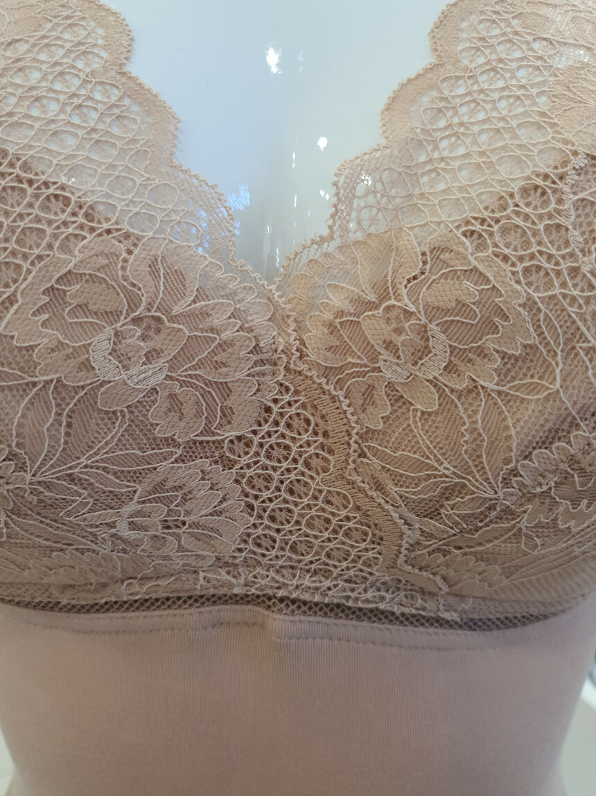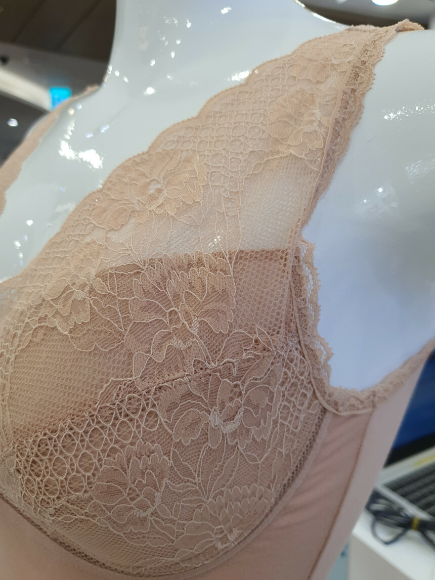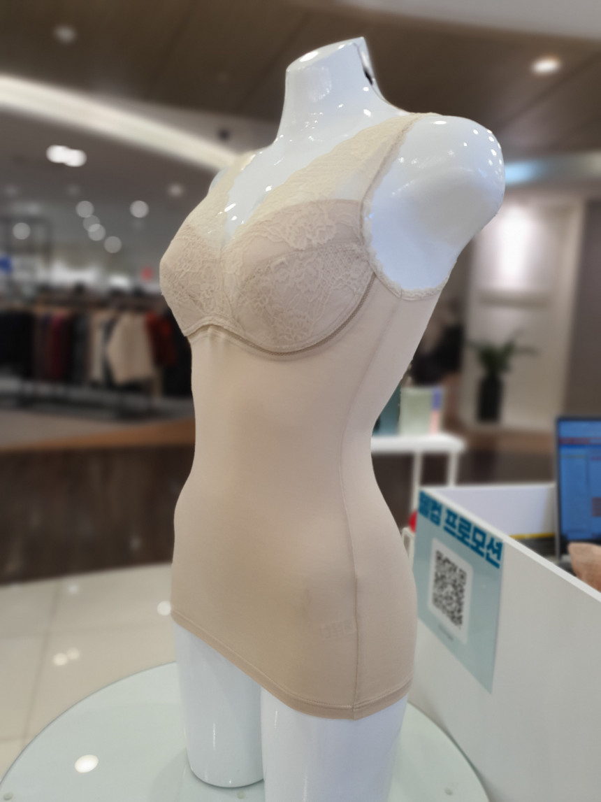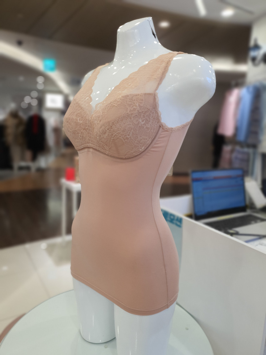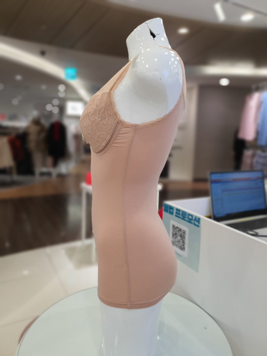 컵라인에 매쉬테이프를 넣어 가슴을 부드럽고 시원하게 잡아주어