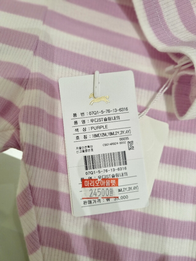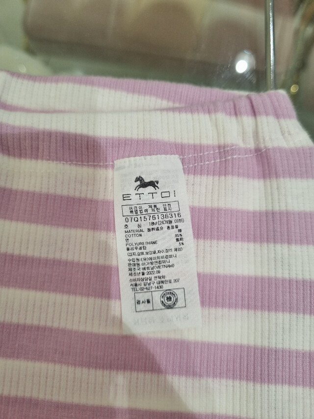 부드러운 면 소재의 여아 내복입니다