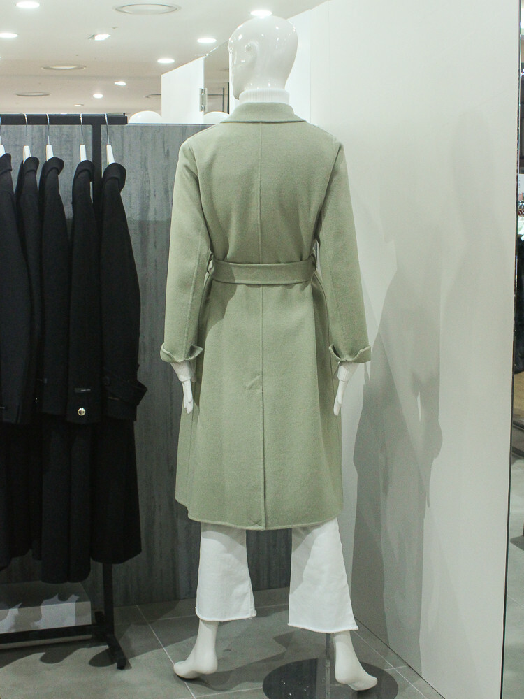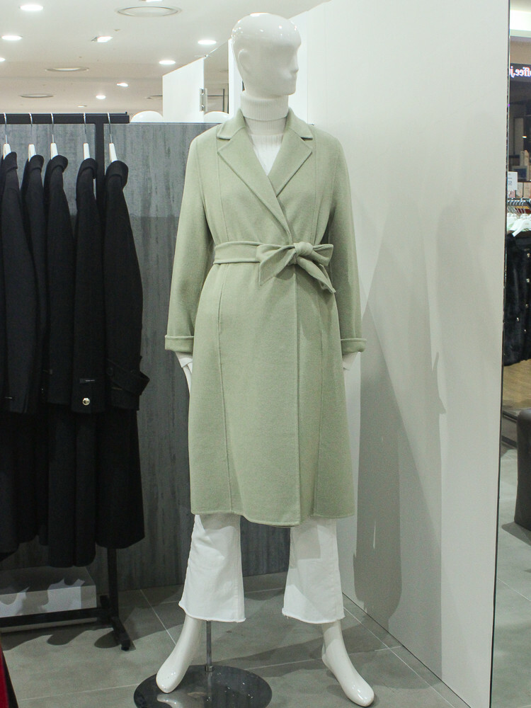 허리벨트로 실루엣을 잡아주어 여성스러운 무드가 느껴지며
