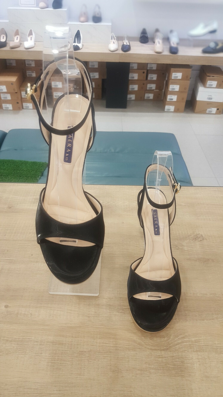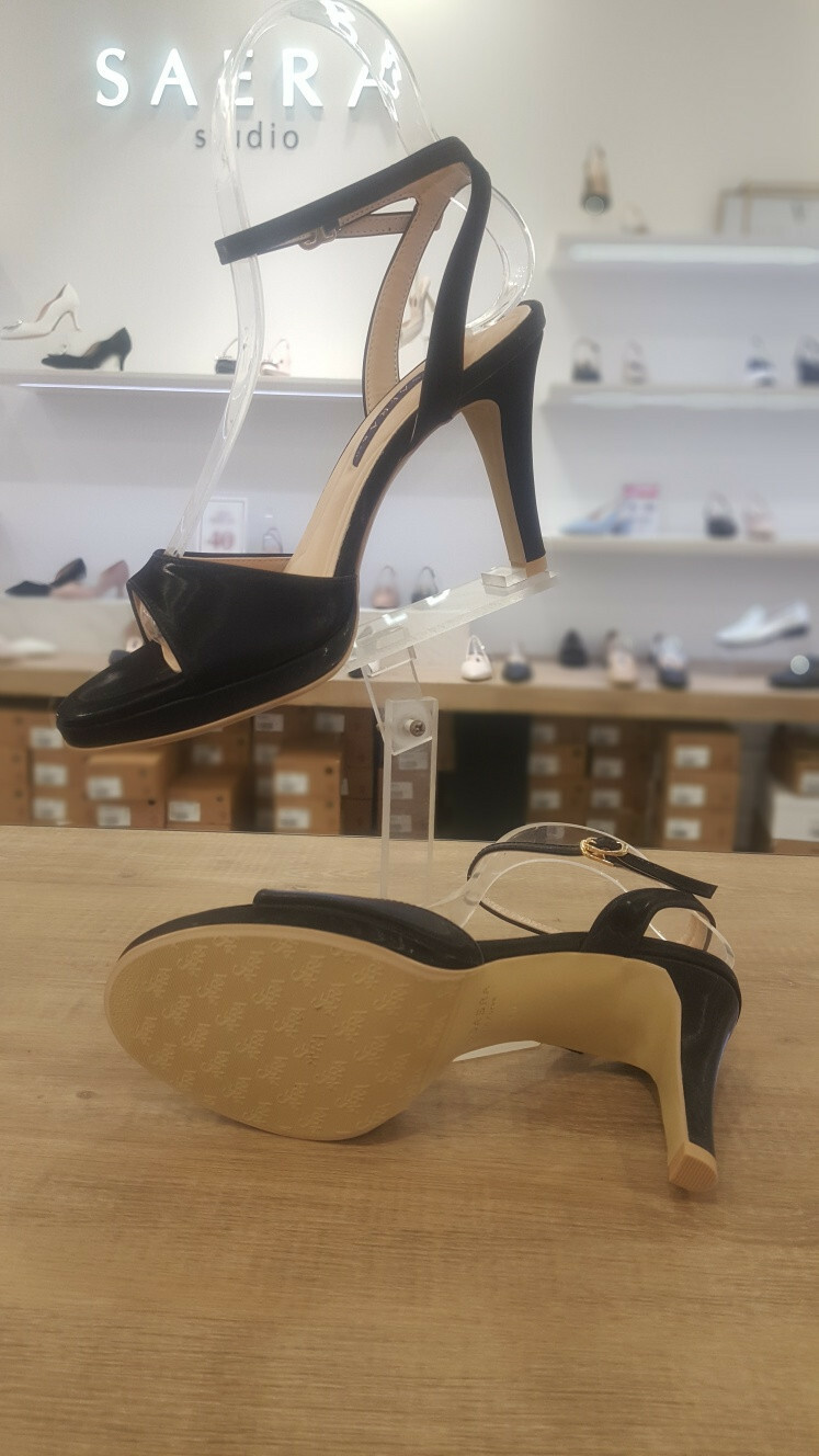 2024 여성 소가죽 라운드토 킬힐 가보시 스트랩 샌들 (9cm)