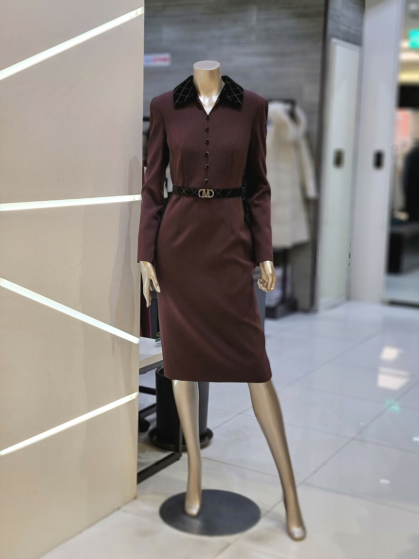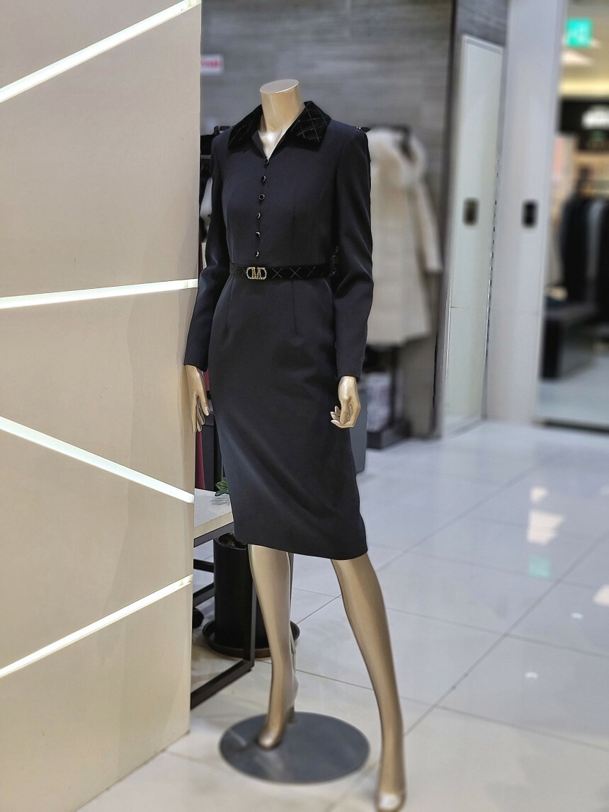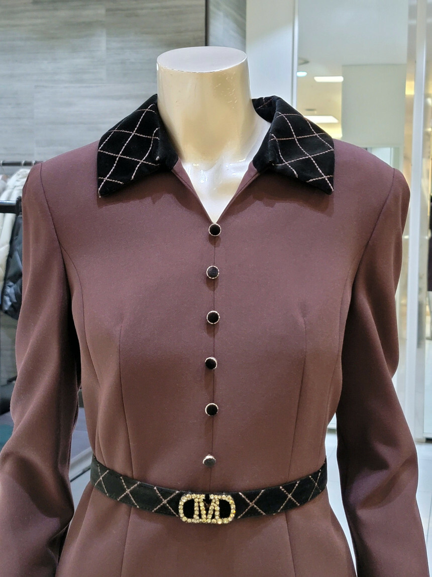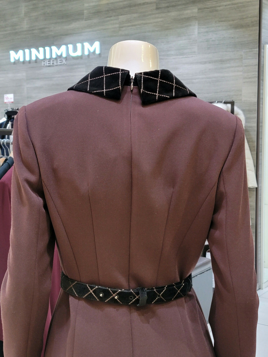 네크라인 카라와 벨트 벨벳 소재가 포인트 배색되어
