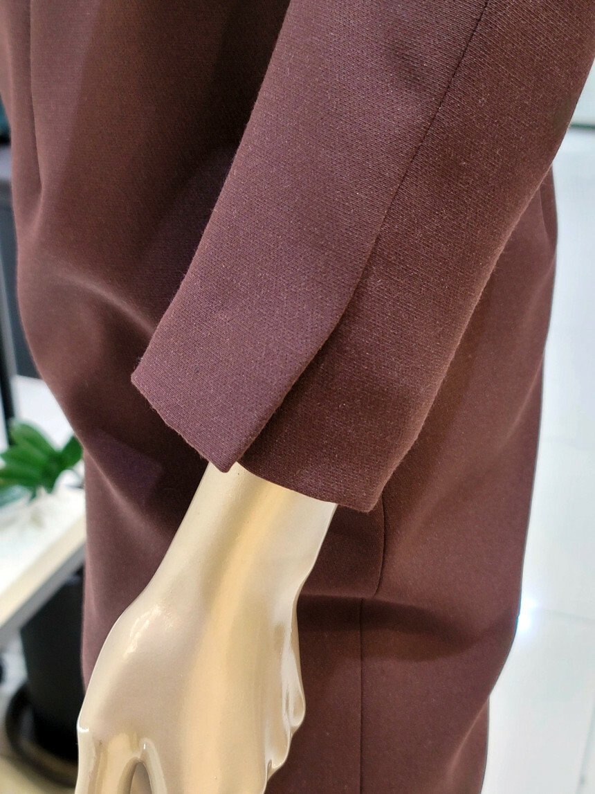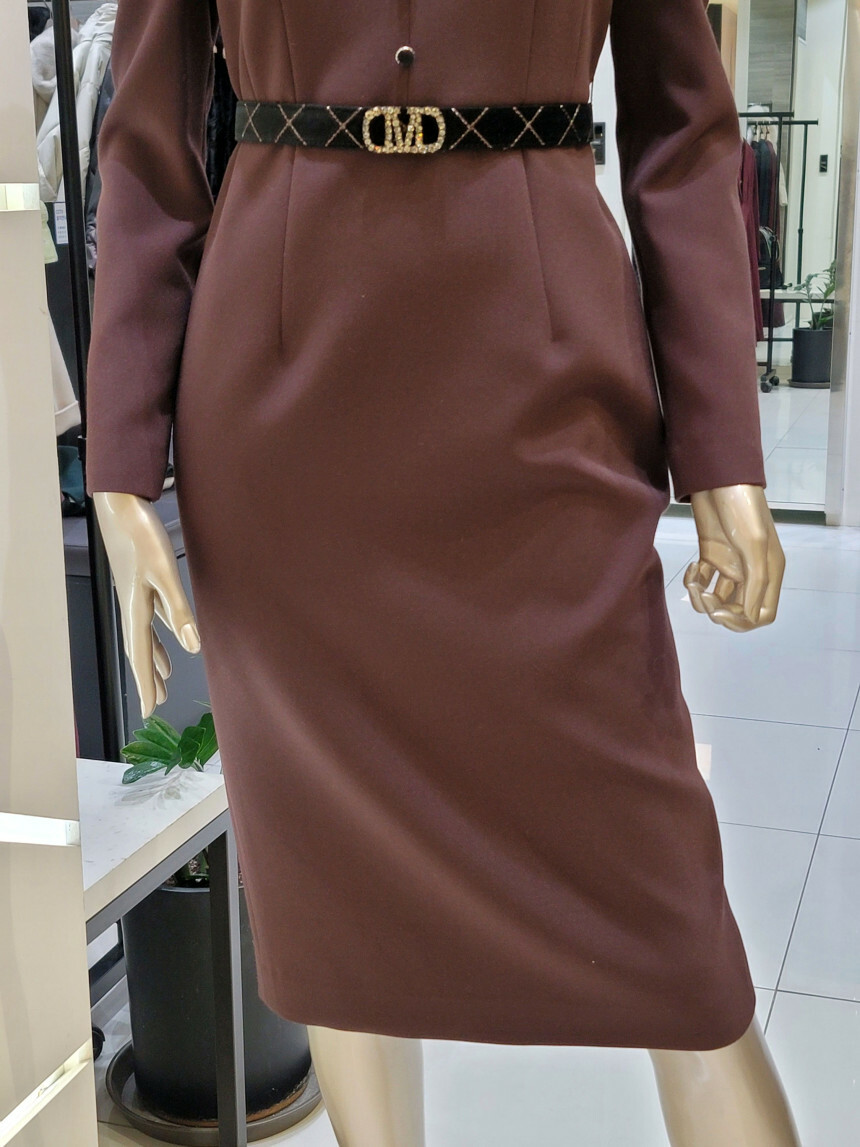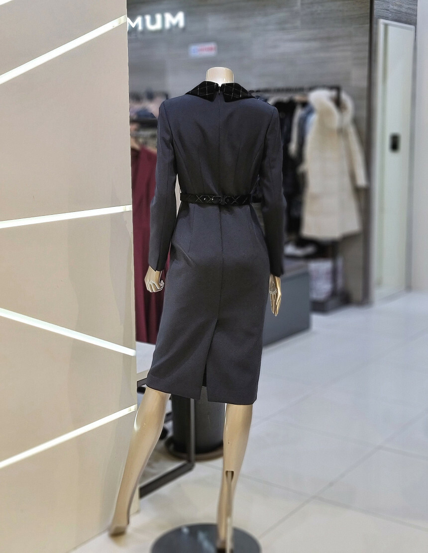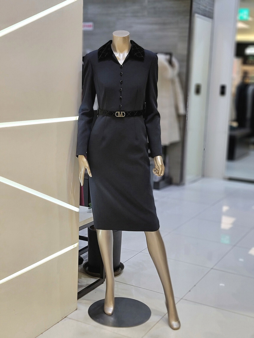네크라인 카라와 벨트 벨벳 소재가 포인트 배색되어