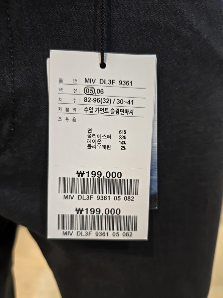 면혼방 수입가먼트 슬림핏의 면바지입니다.