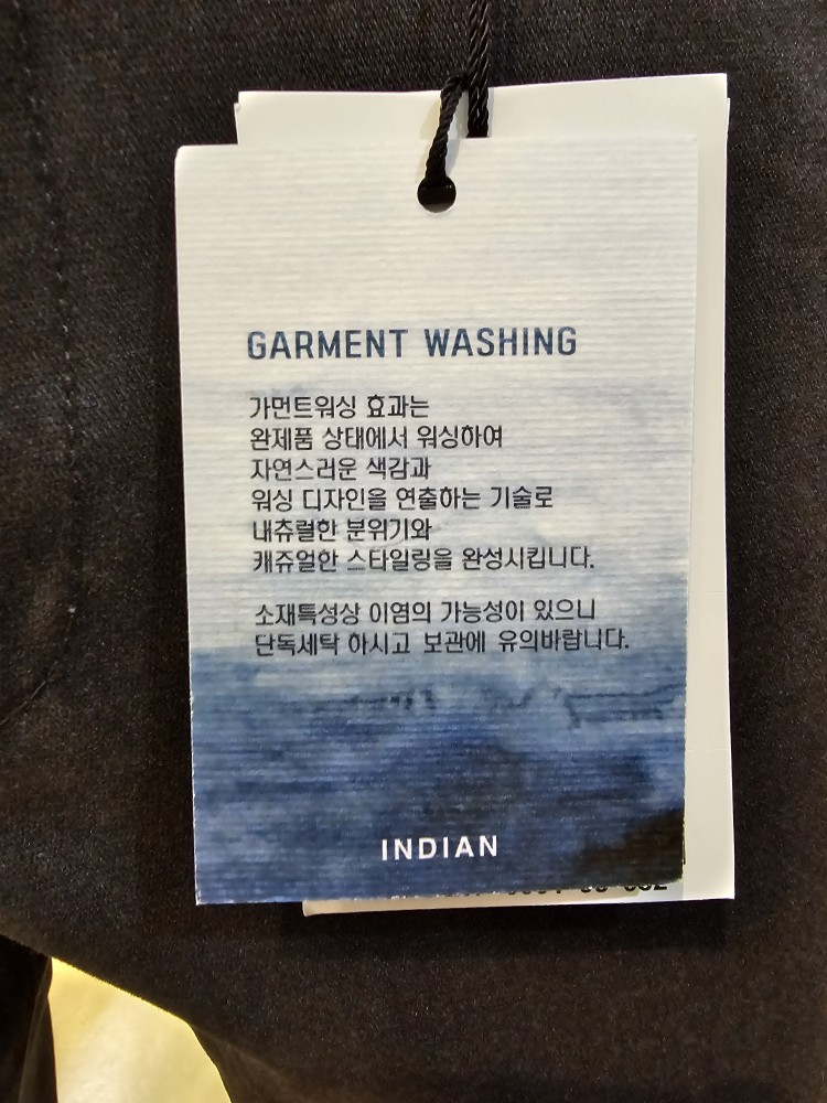 가먼트효과는 완제품상태에서 워싱효과를 주어 자연스러운 색감과 내츄럴한 분위기를 연출합니다.
