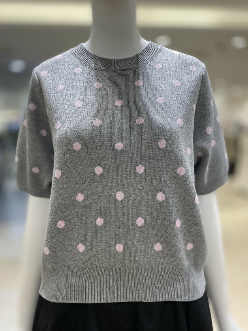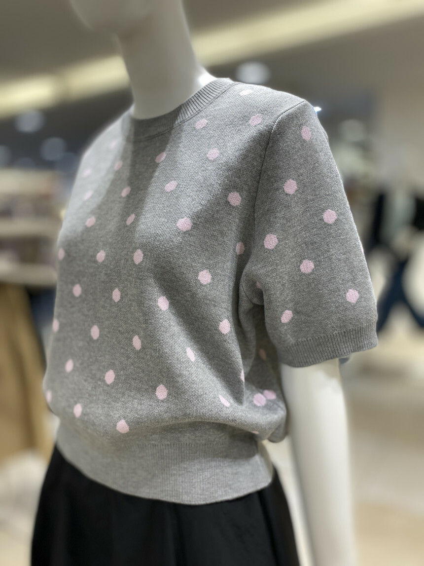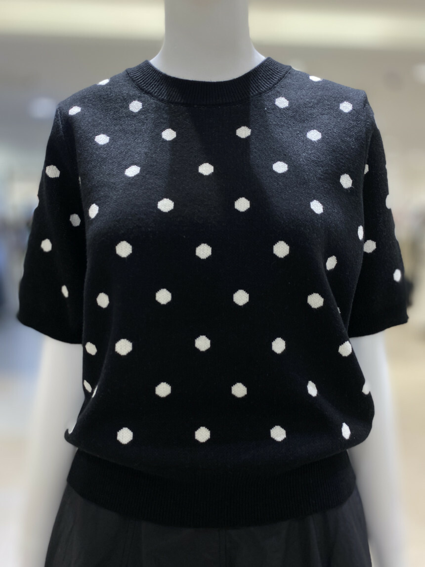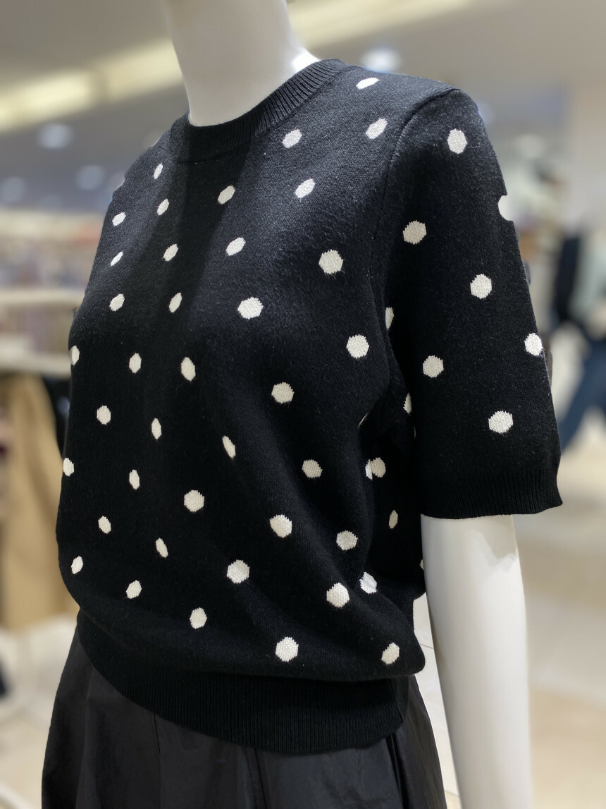 도트 배색 라운드 니트