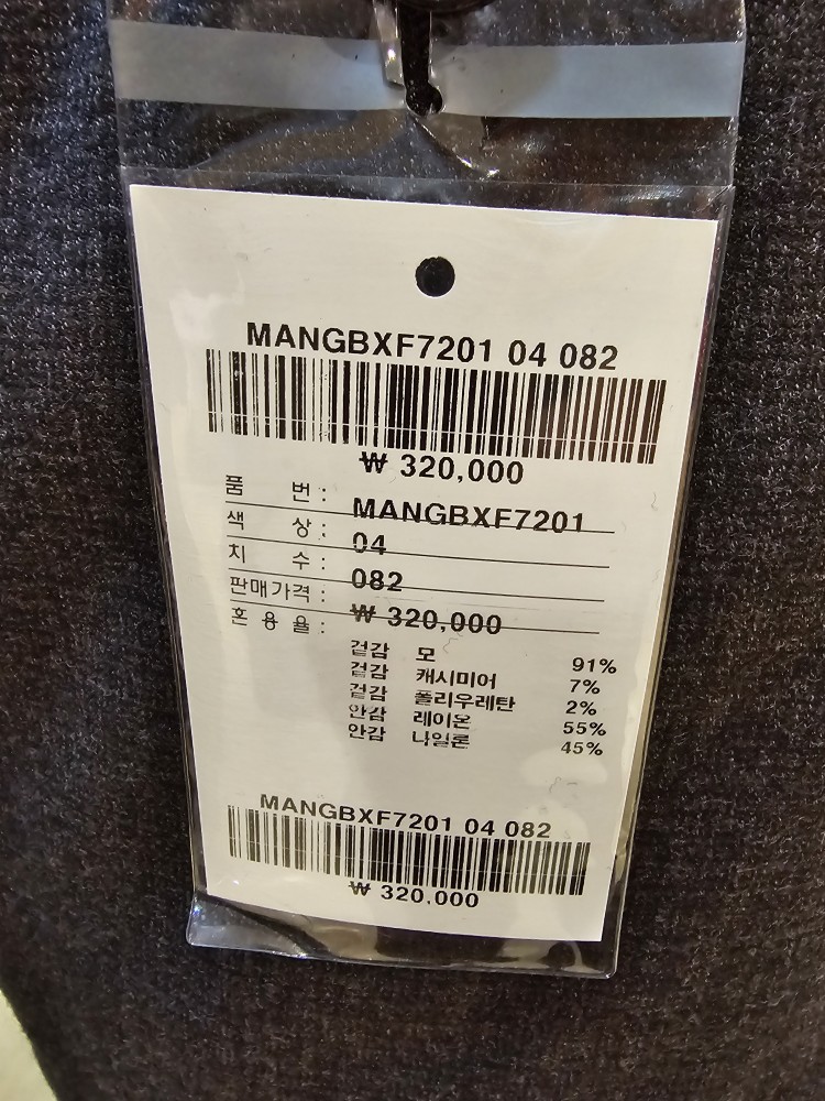 겉감 : 모91% 캐시미어7% 폴리우레탄2%