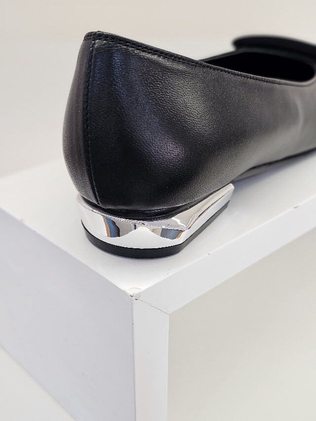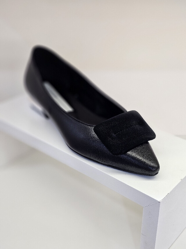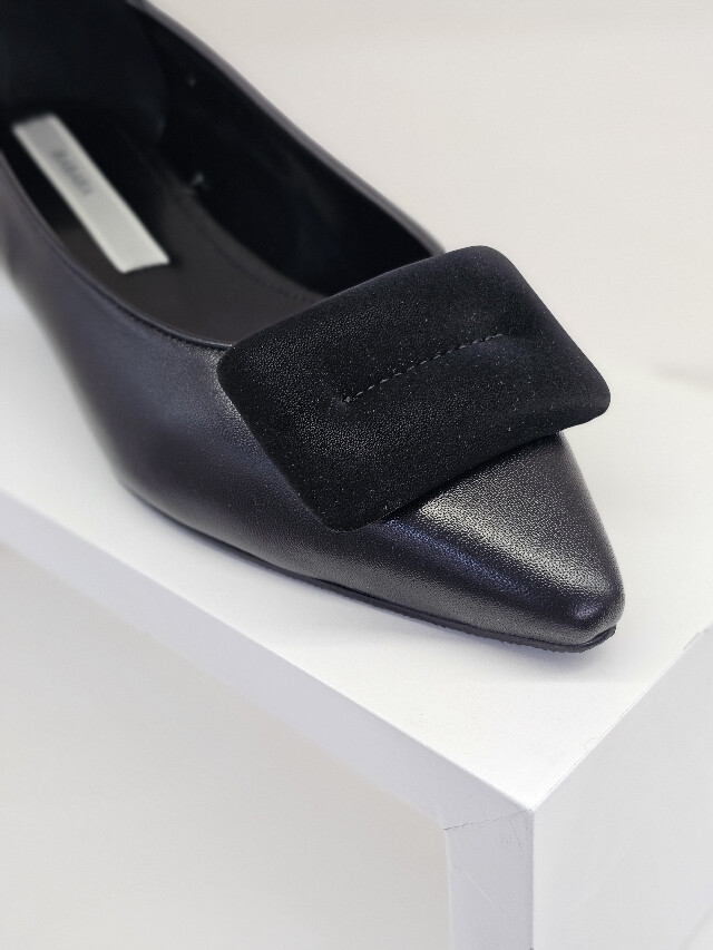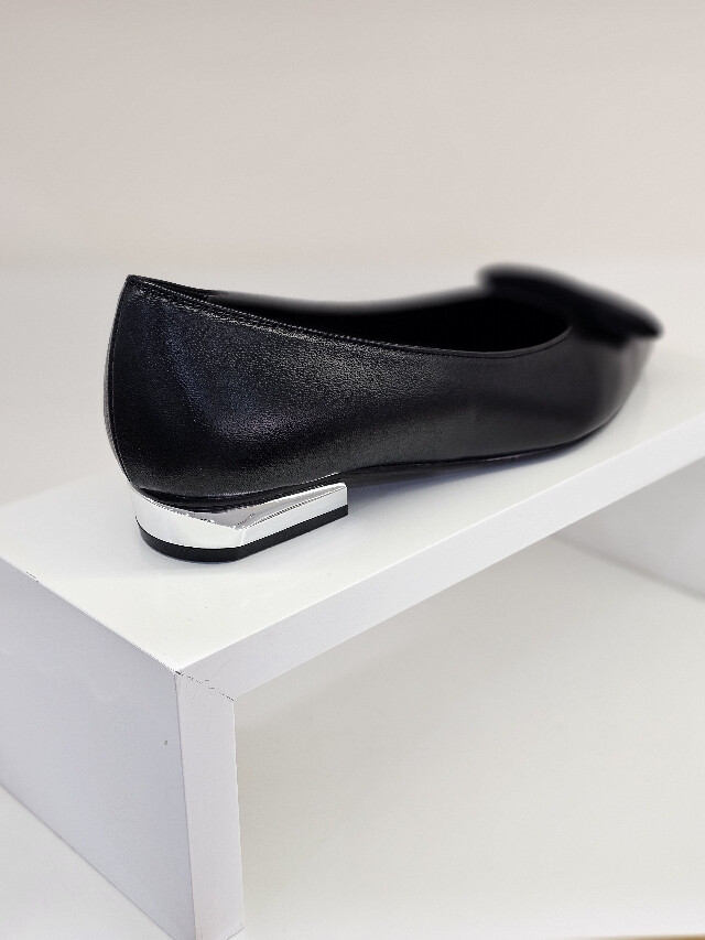 베이직한 플렛슈즈 디자인에 사각장식 포인트