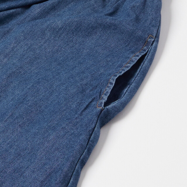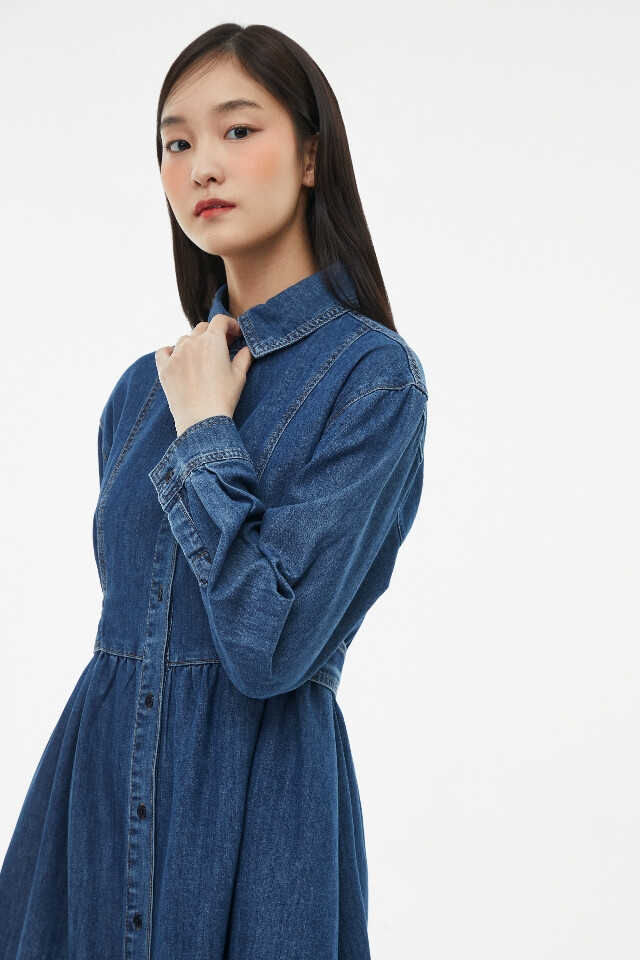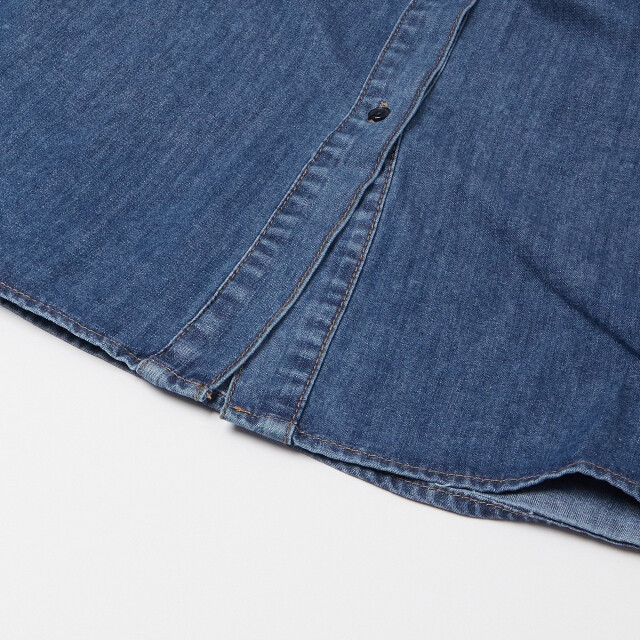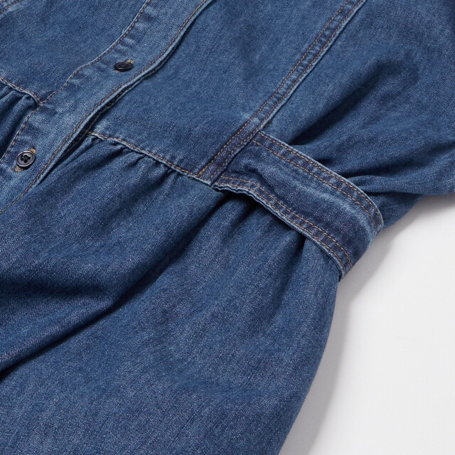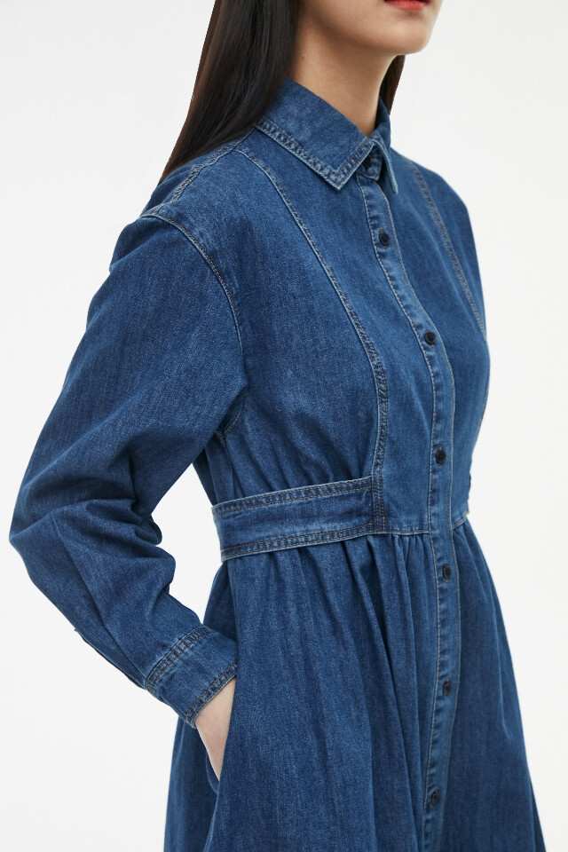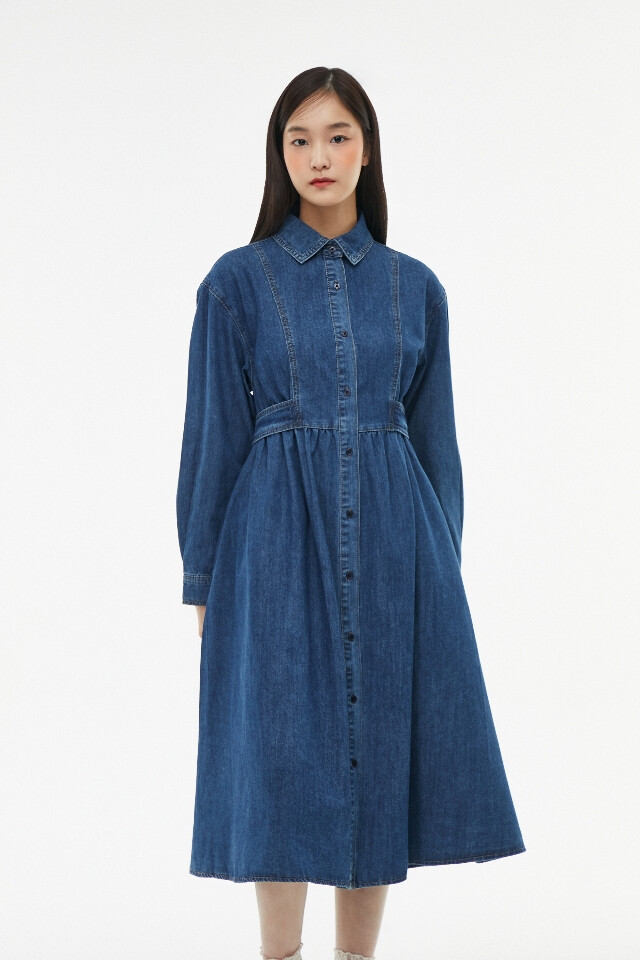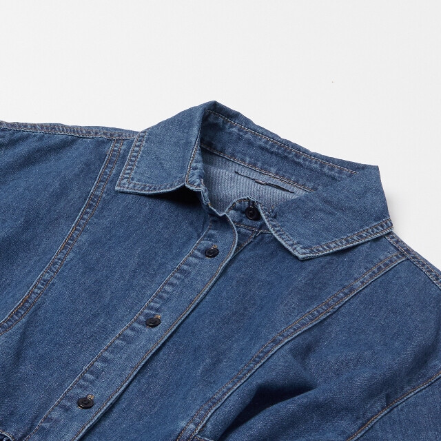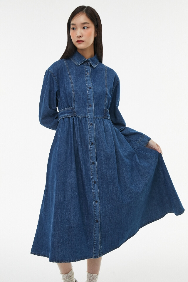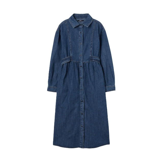 절개 포인트 셔츠 카라 롱데님 원피스 ~