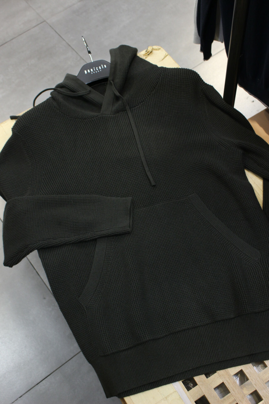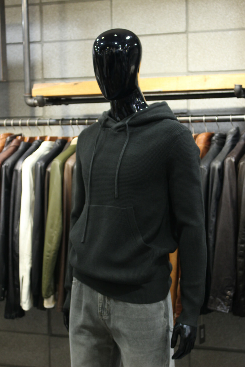 캐주얼하게 연출하기 좋은 후드니트티입니다