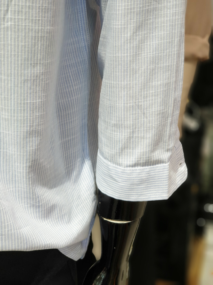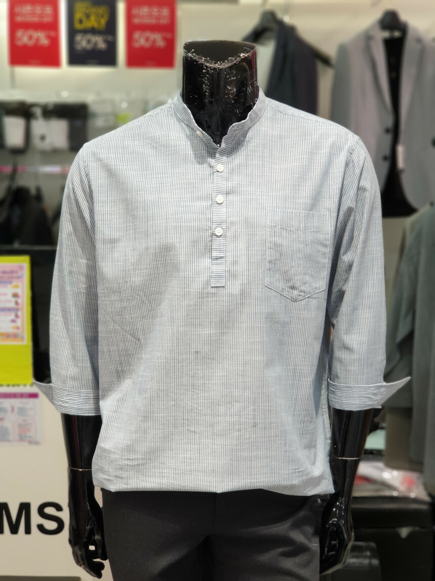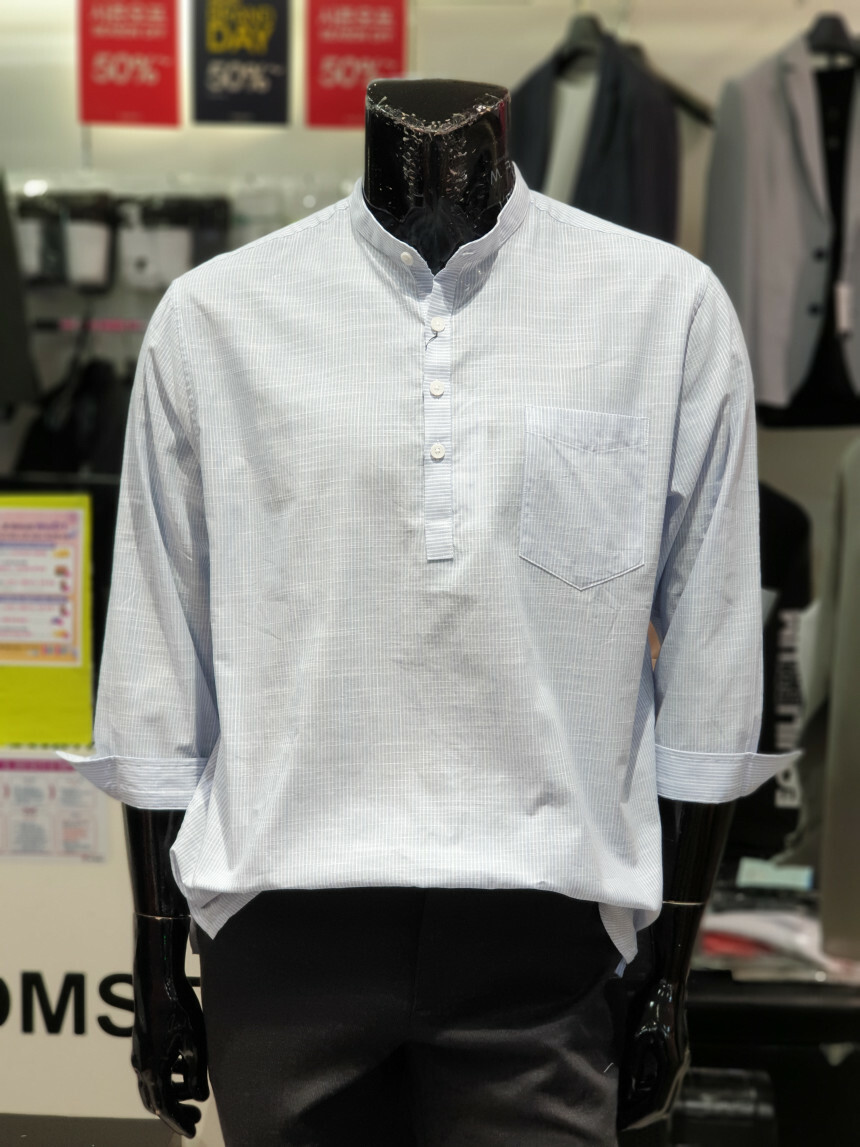 핀 스트라이프 헨리넥 7부 셔츠 입니다