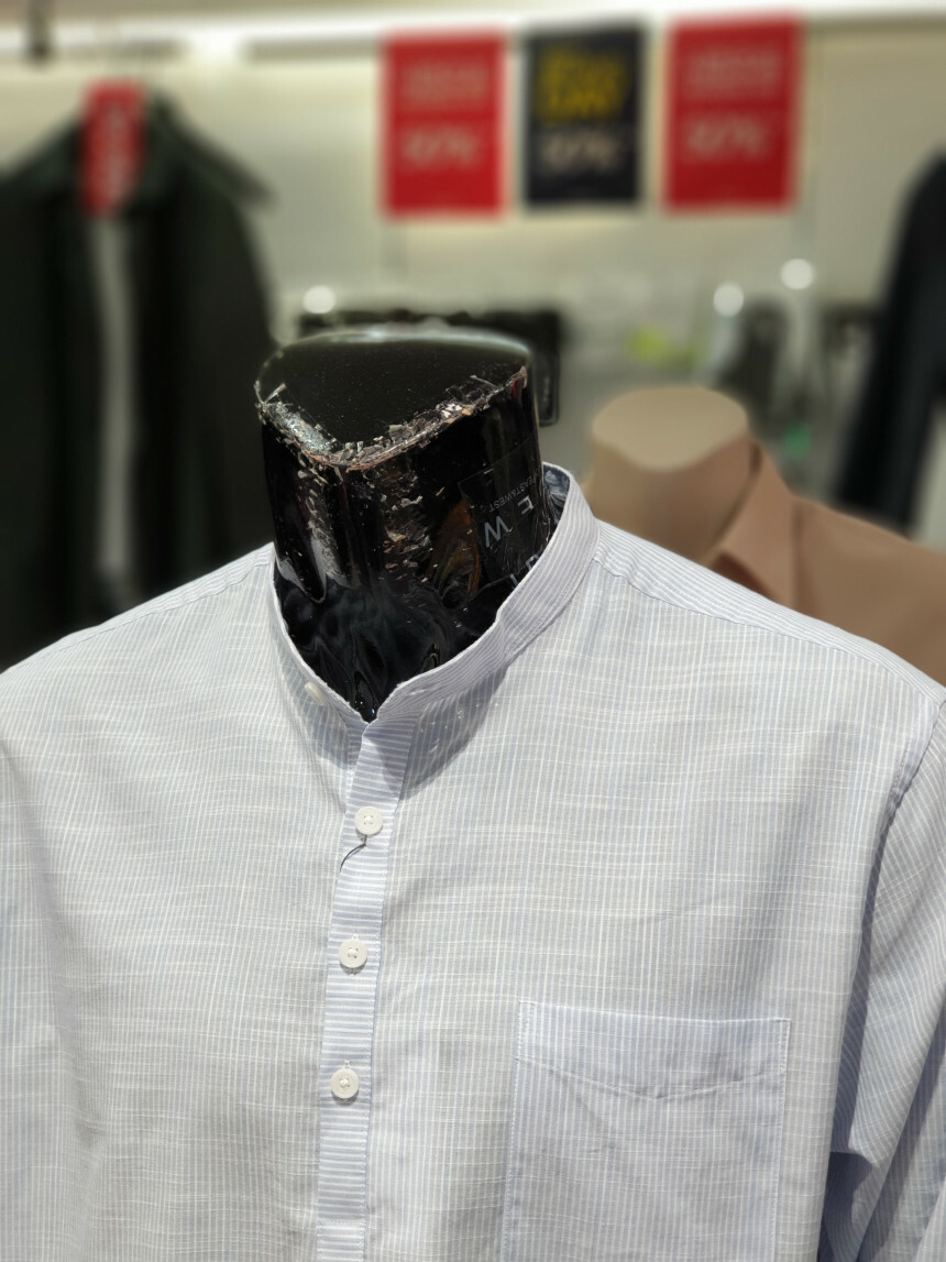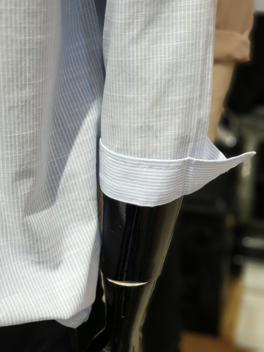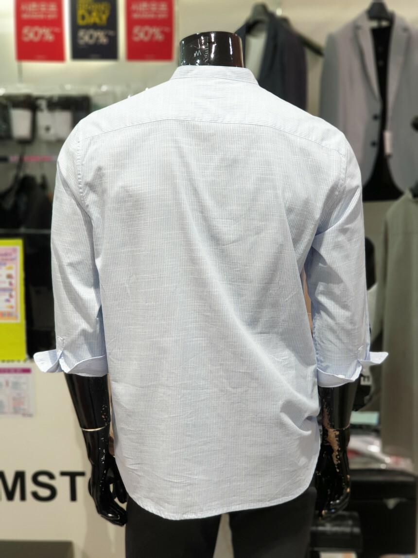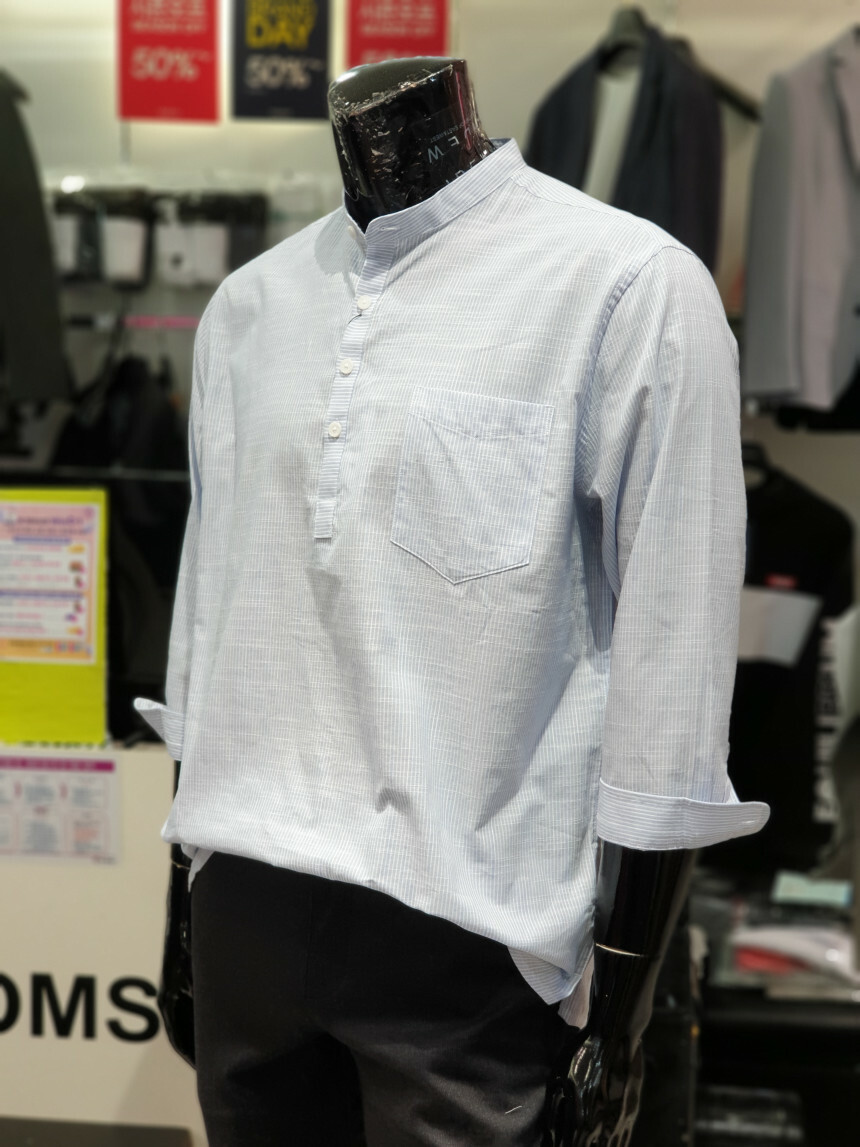 핀 스트라이프 헨리넥 7부 셔츠 입니다