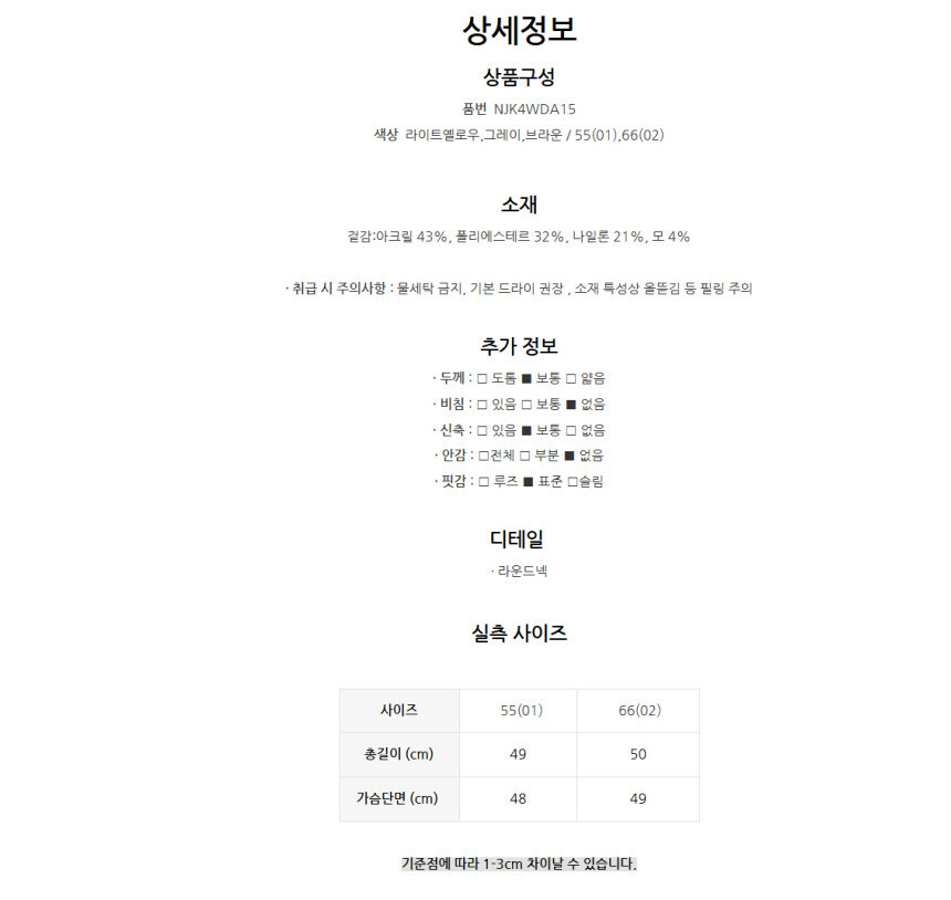 라운드넥 금장버튼 가디건 NJK4WDA15