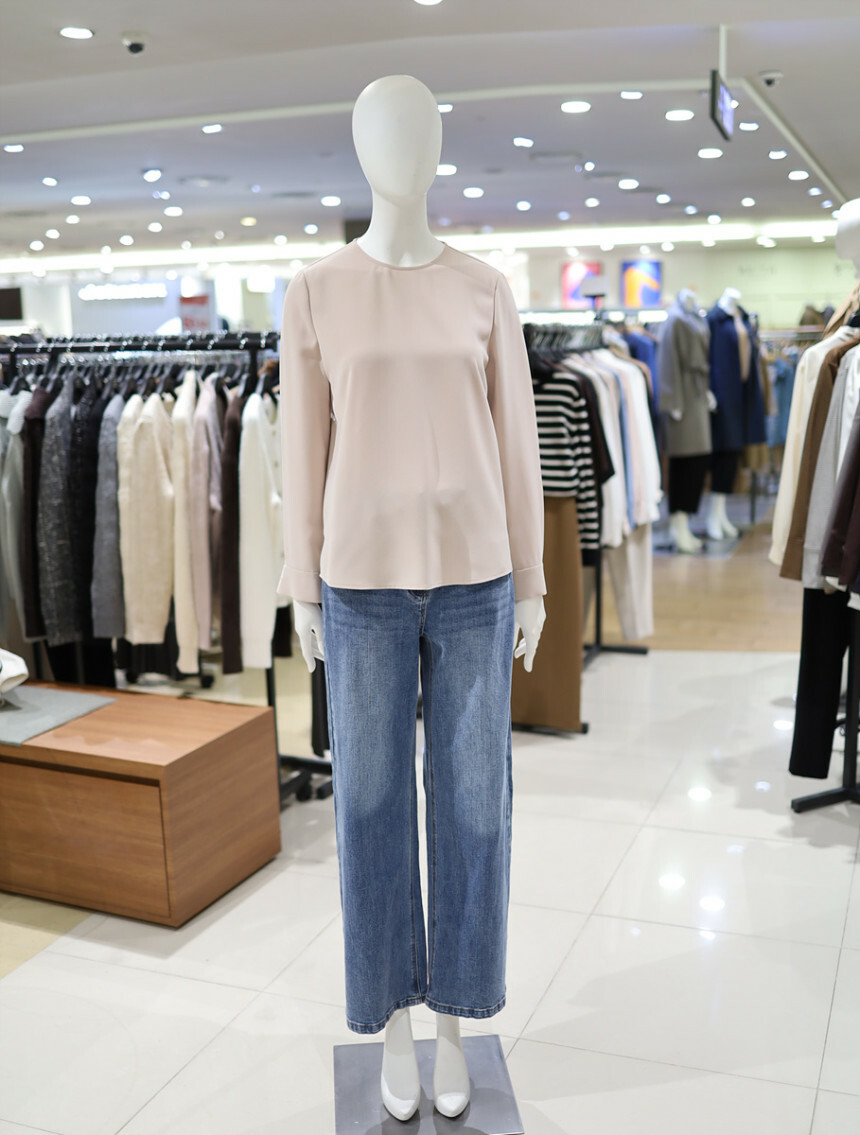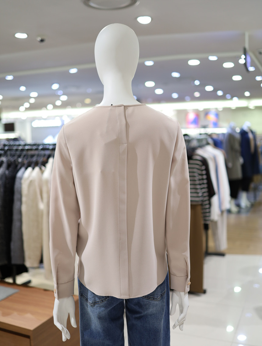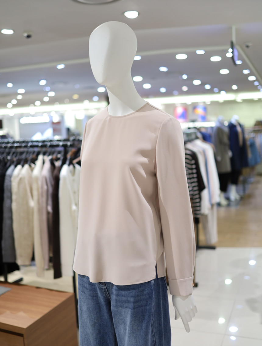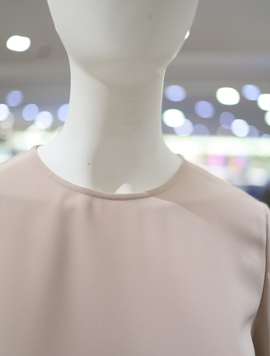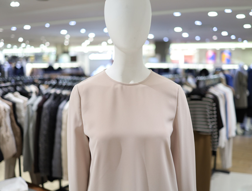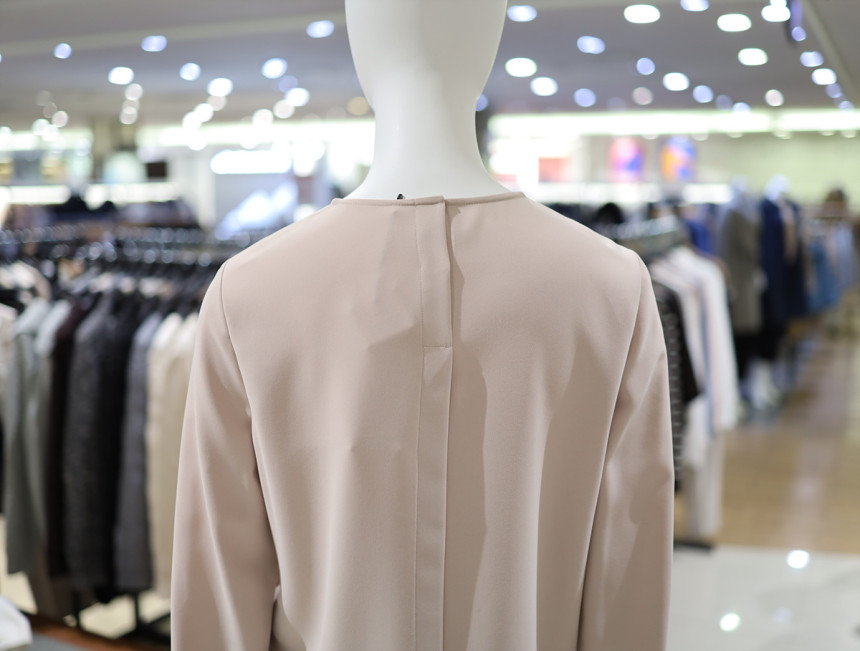 라운드넥 디자인에 뒷면 지퍼 클로징으로