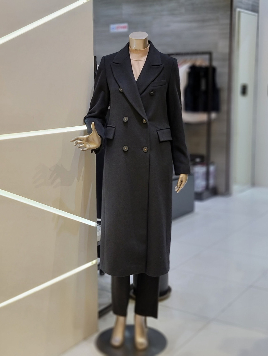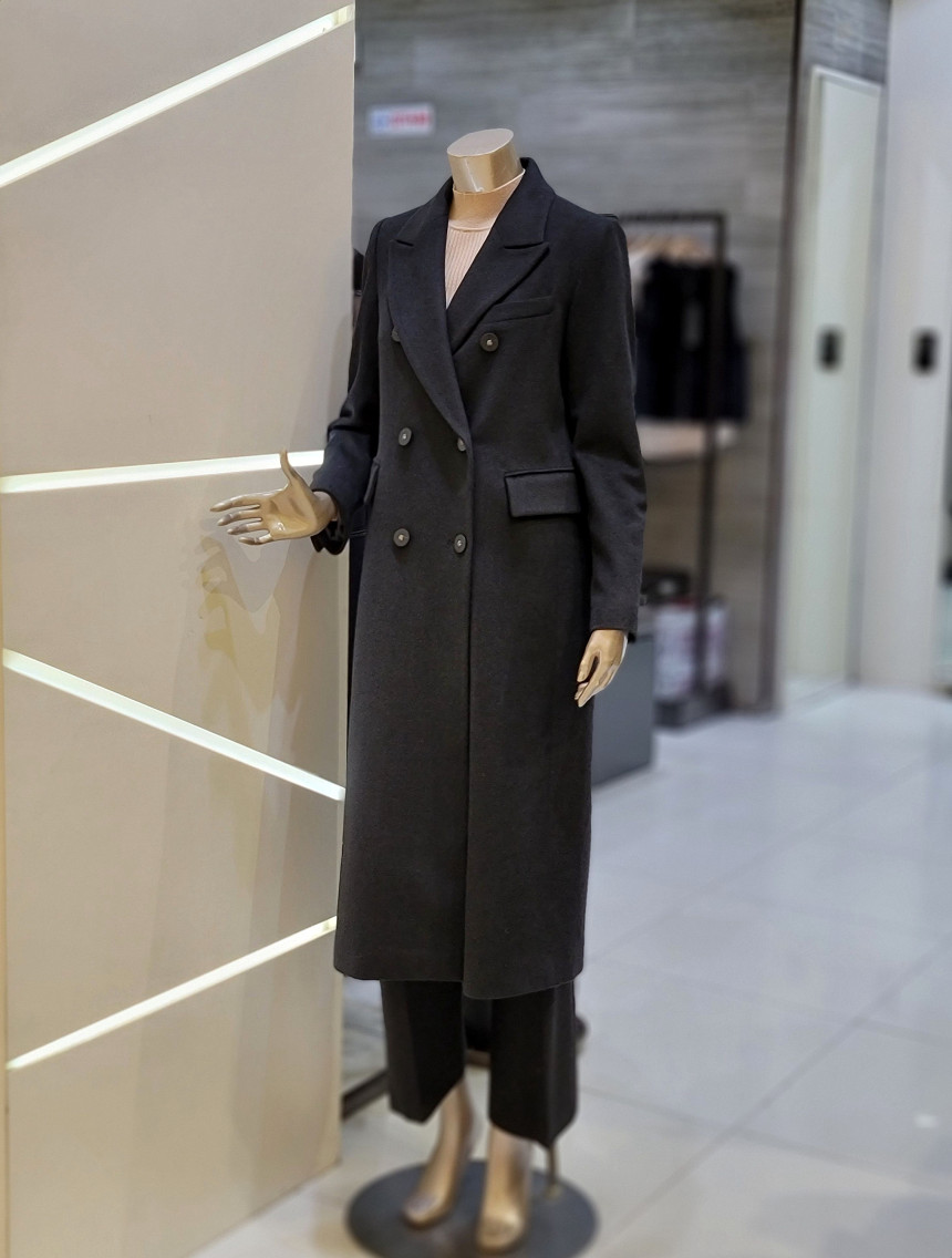 더블브레스트 디자인으로 클로징 실루엣이 멋스러우며