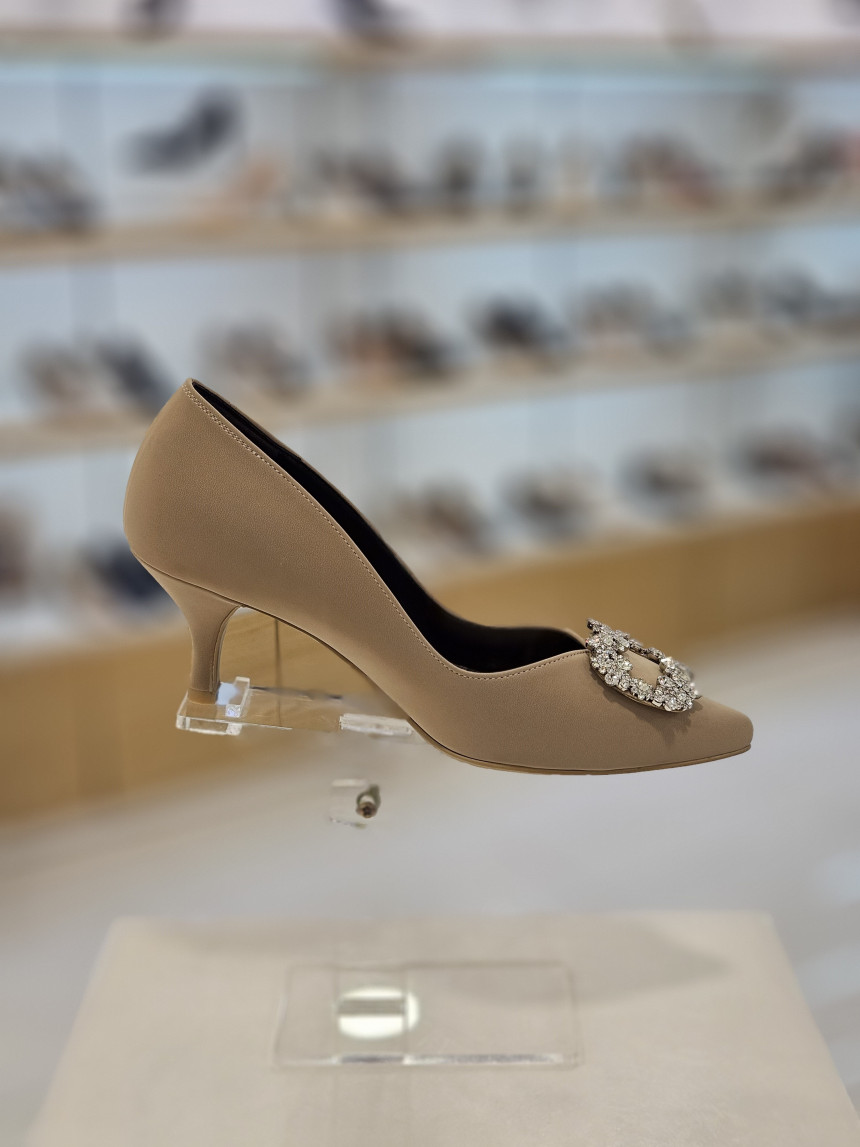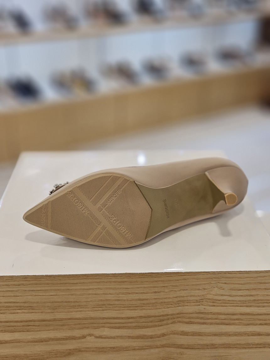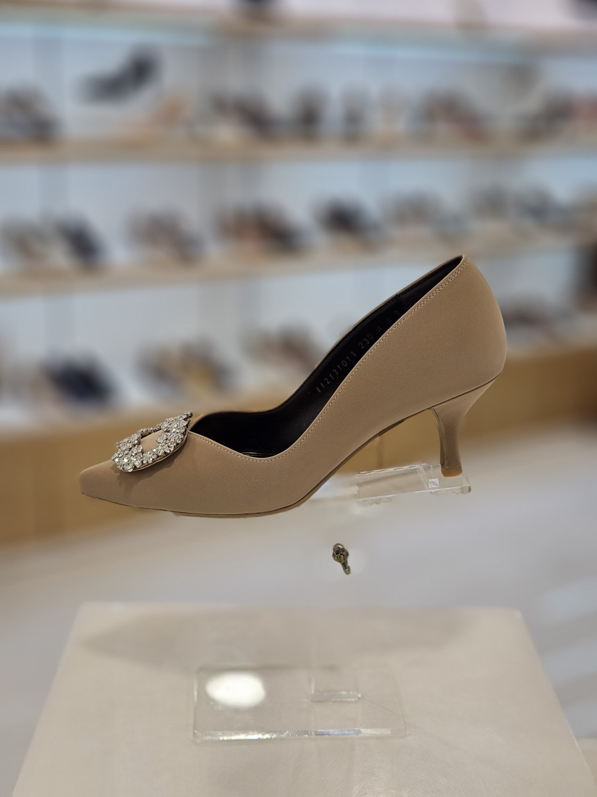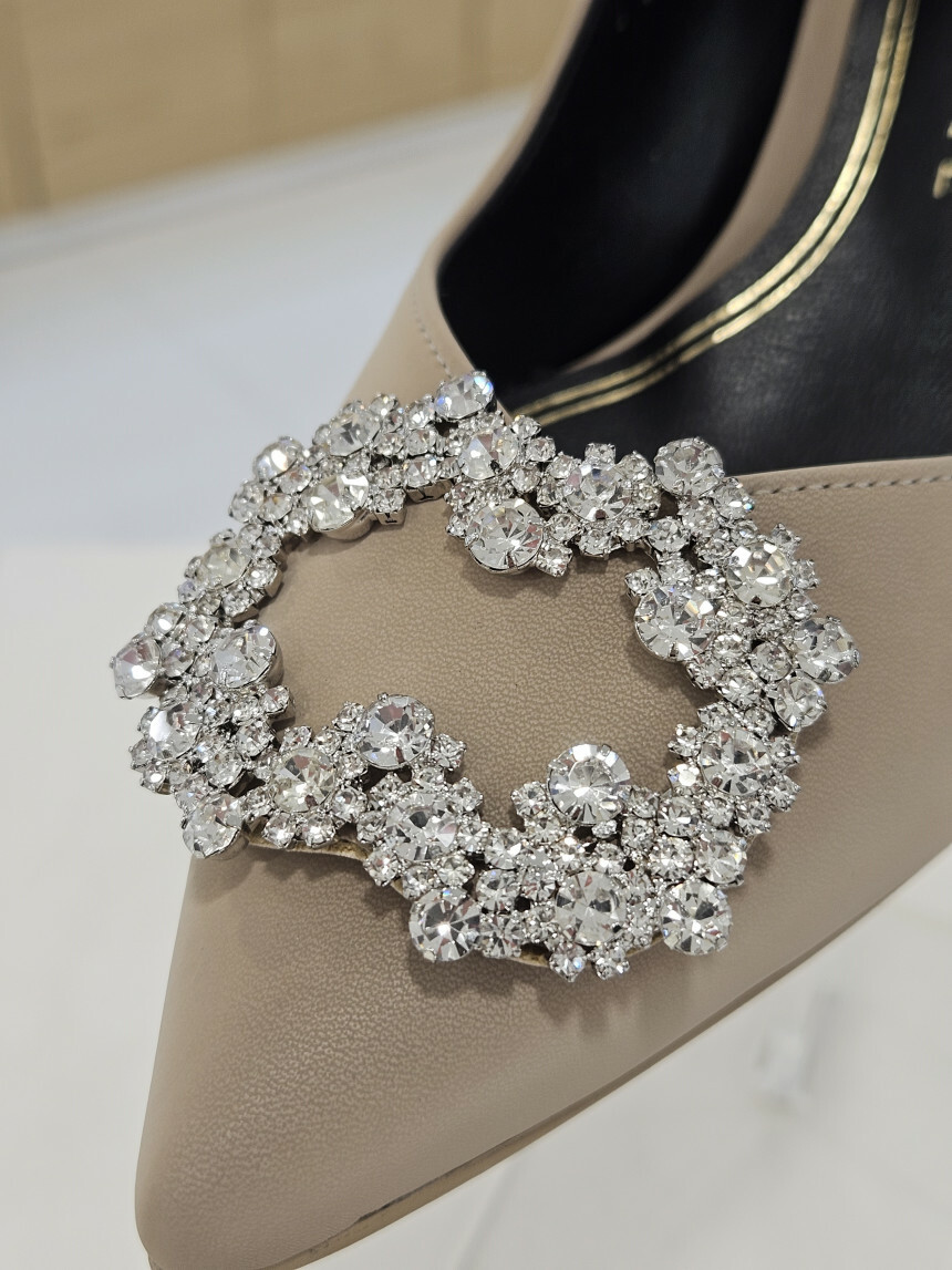 ▶ 독특한 소재감의 소재와 페미닌한 느낌의 앞장식,