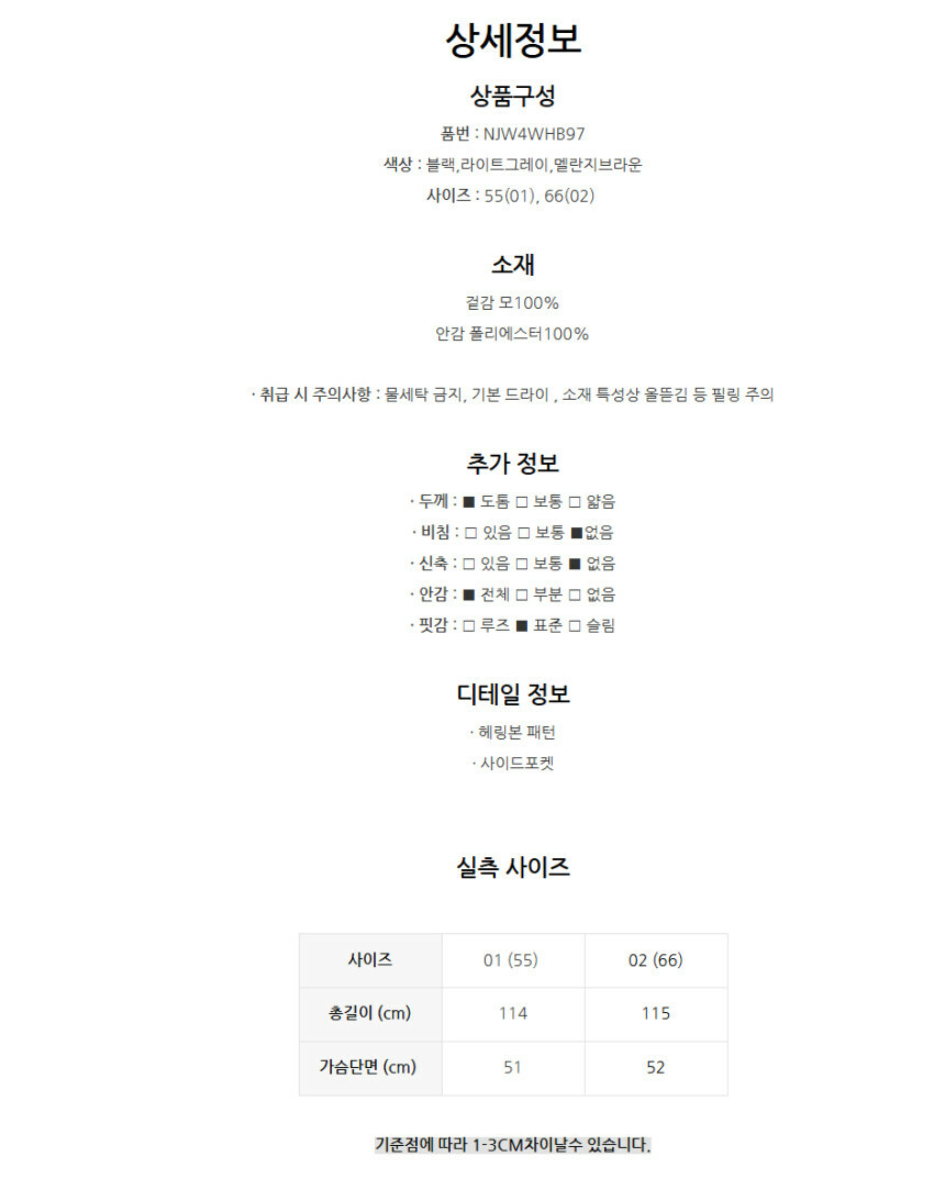 헤링본 양모100 롱 코트 NJW4WHB97
