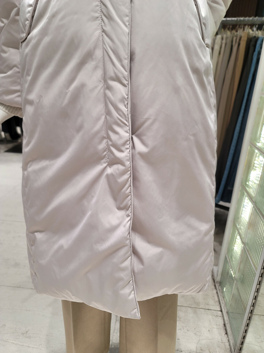 아우터 연출이 가능한 이중 후드 구스 롱 다운입니다.