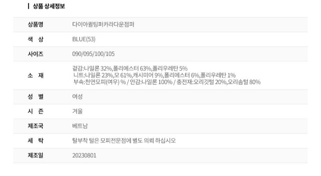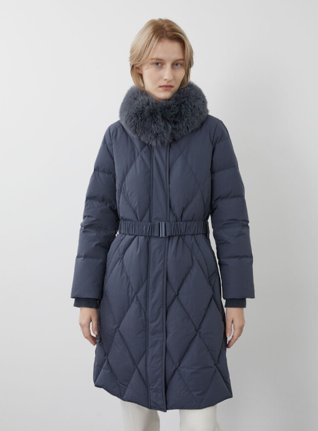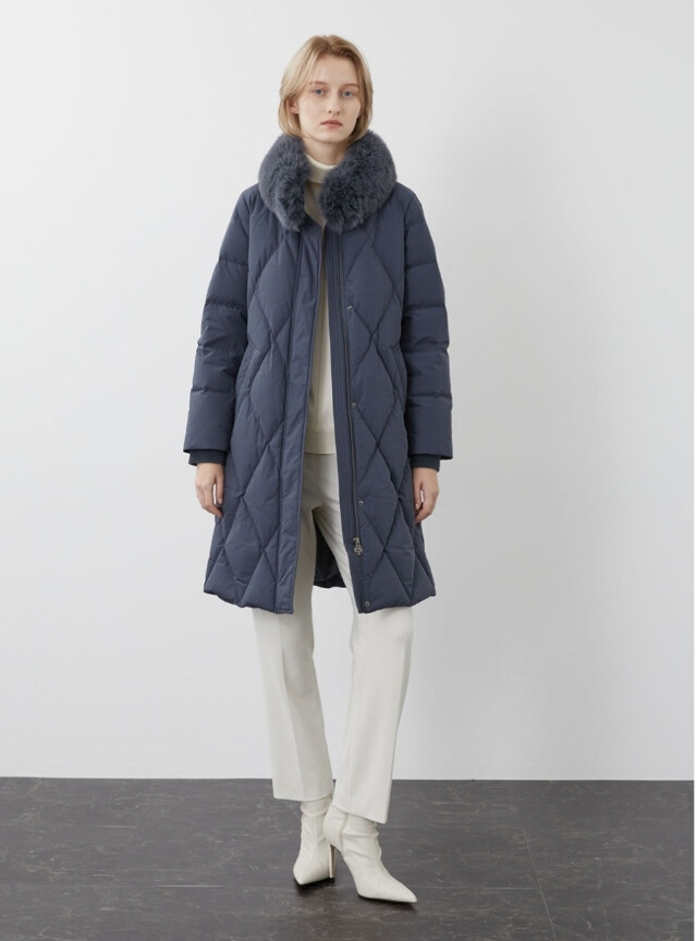 다이아 퀼팅이 포인트인 슬림 구스 다운점퍼입니다