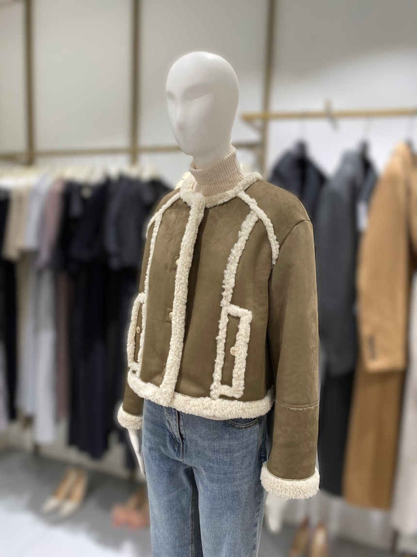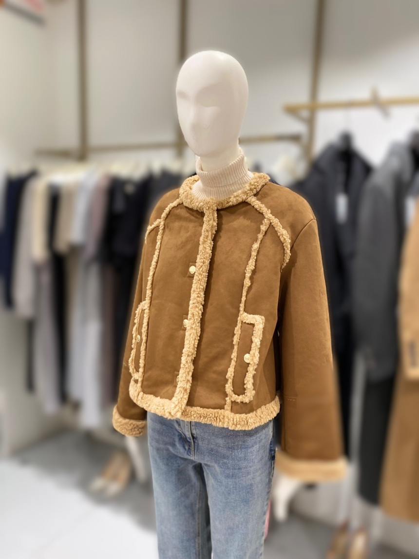 배색 포인트 페이크 스웨이드 무스탕 NJM4WMB19