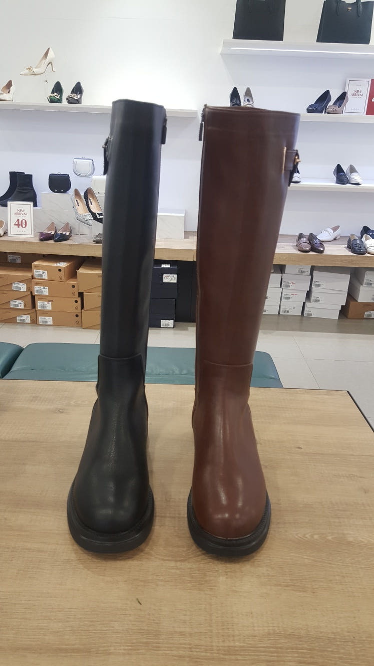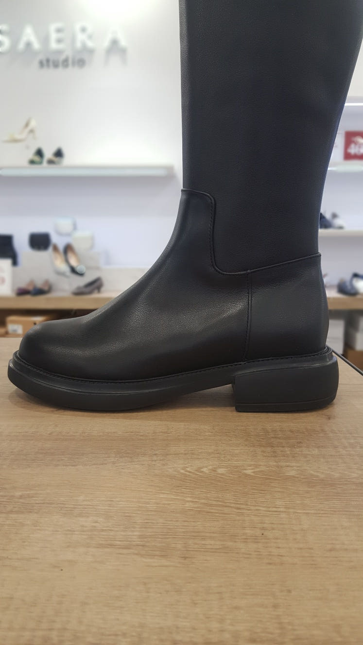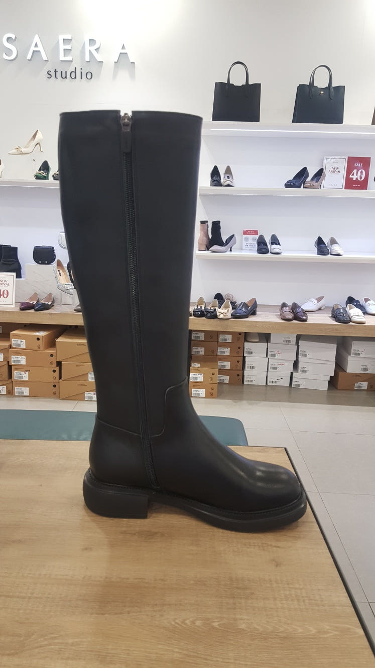 SAERA 2023 F/W 여성 소가죽 라운드토 롱부츠 (4cm) C23L501