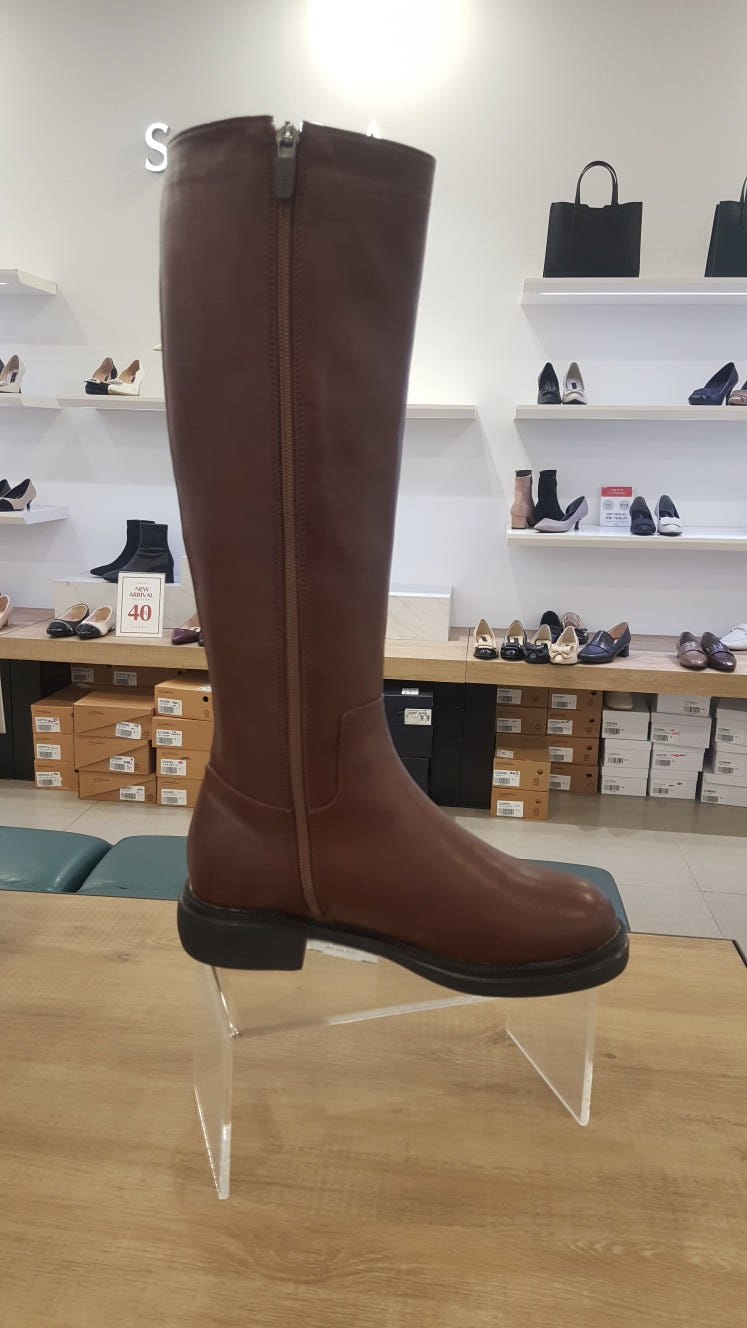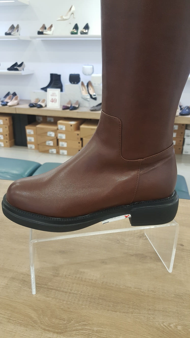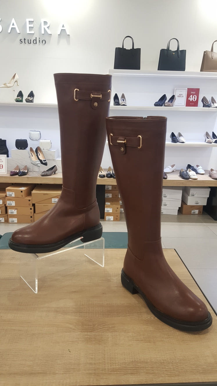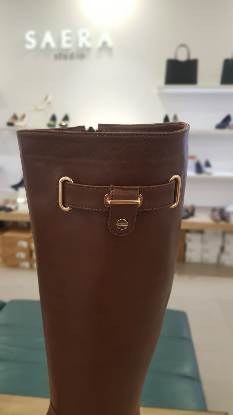 SAERA 2023 F/W 여성 소가죽 라운드토 롱부츠 (4cm) C23L501