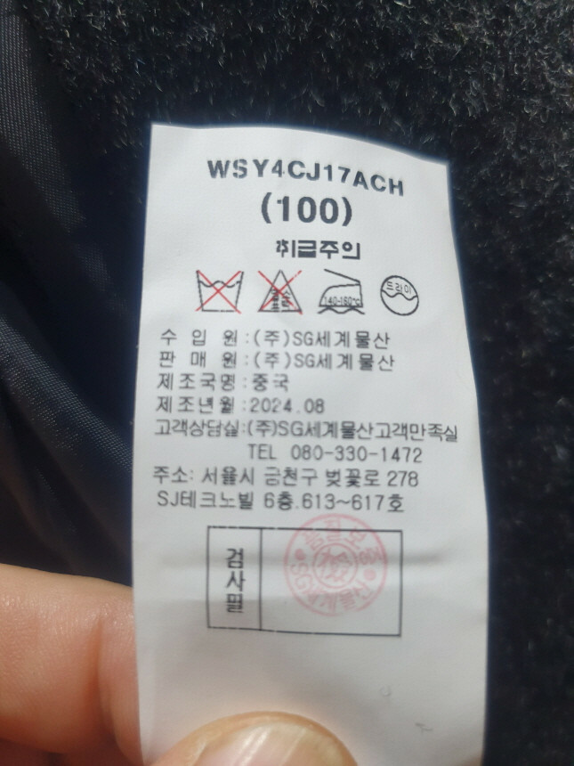 겉감 : 모 61% , 캐시미어 31% , 레이온 3% , 나일론 3%, 면 2%