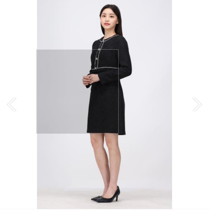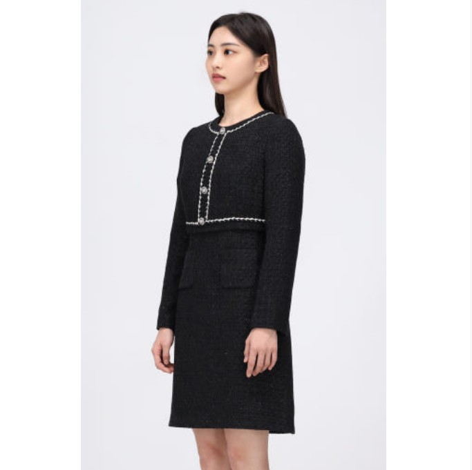 트위드 소재로 고급스럽고 페미닌한 분위기가 연출되며|*|