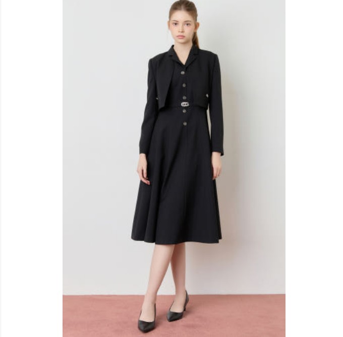 조직감이 돋보이는 원단과 벨티드 디테일|*| 플레어 실루엣이 조화롭게 어우러진 원피스입니다.