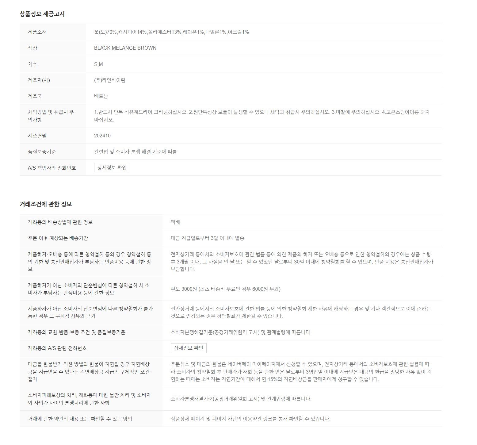 울과 캐시미어 혼방 소재로 부드럽고 포근한 착용감을 선사합니다.