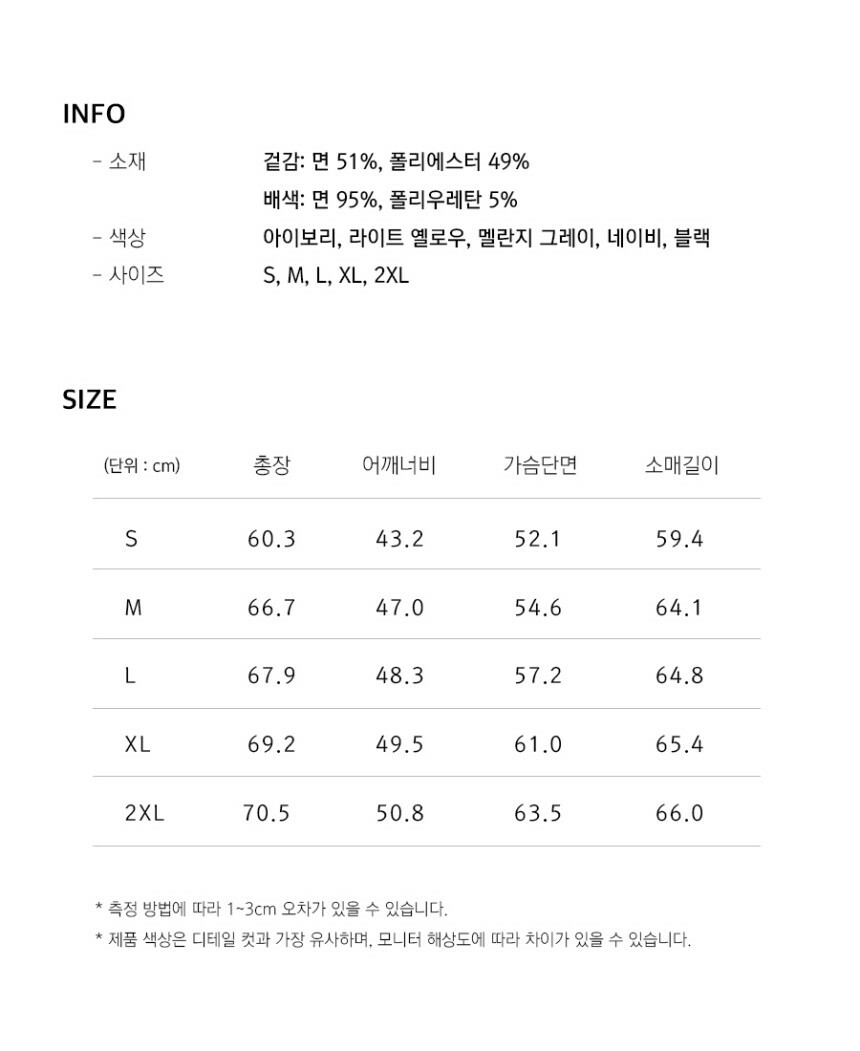 폴리에스터 혼방소재로 가볍게 입으시기 좋아요~