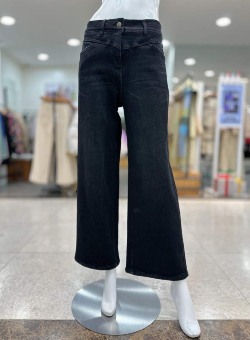 뒷포켓 자수 보들기모 일자 데님팬츠