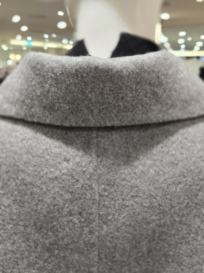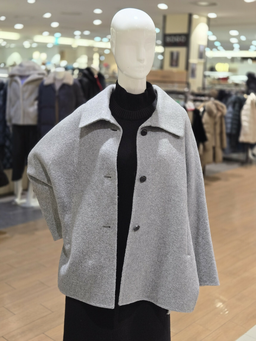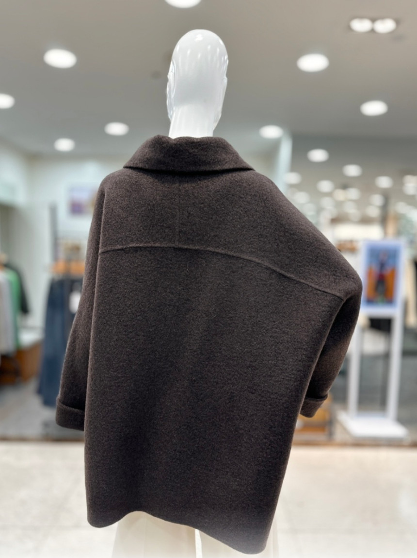 케이프 스타일로 루즈핏 긴팔 캐시미어100% 가벼운 하프코트입니다.