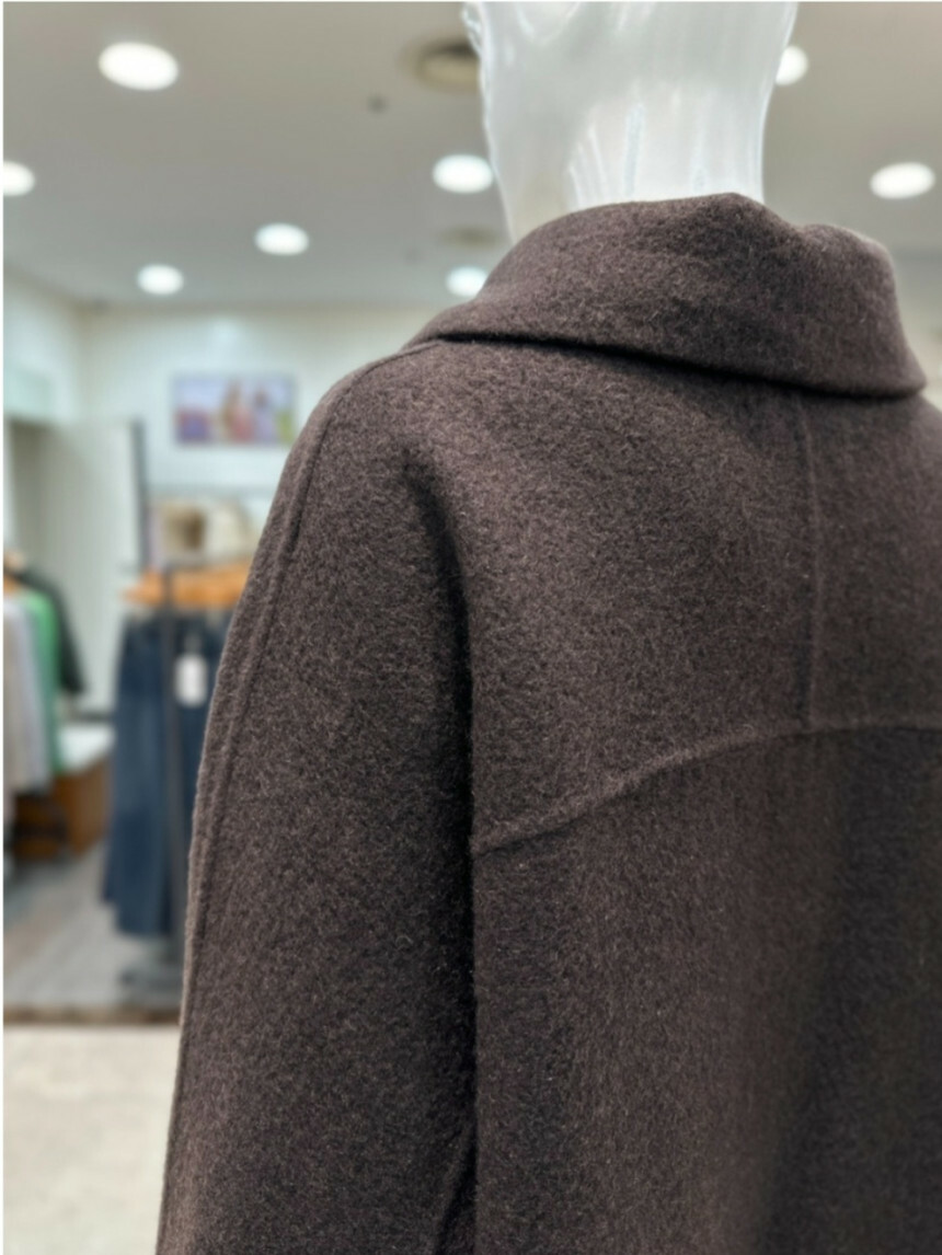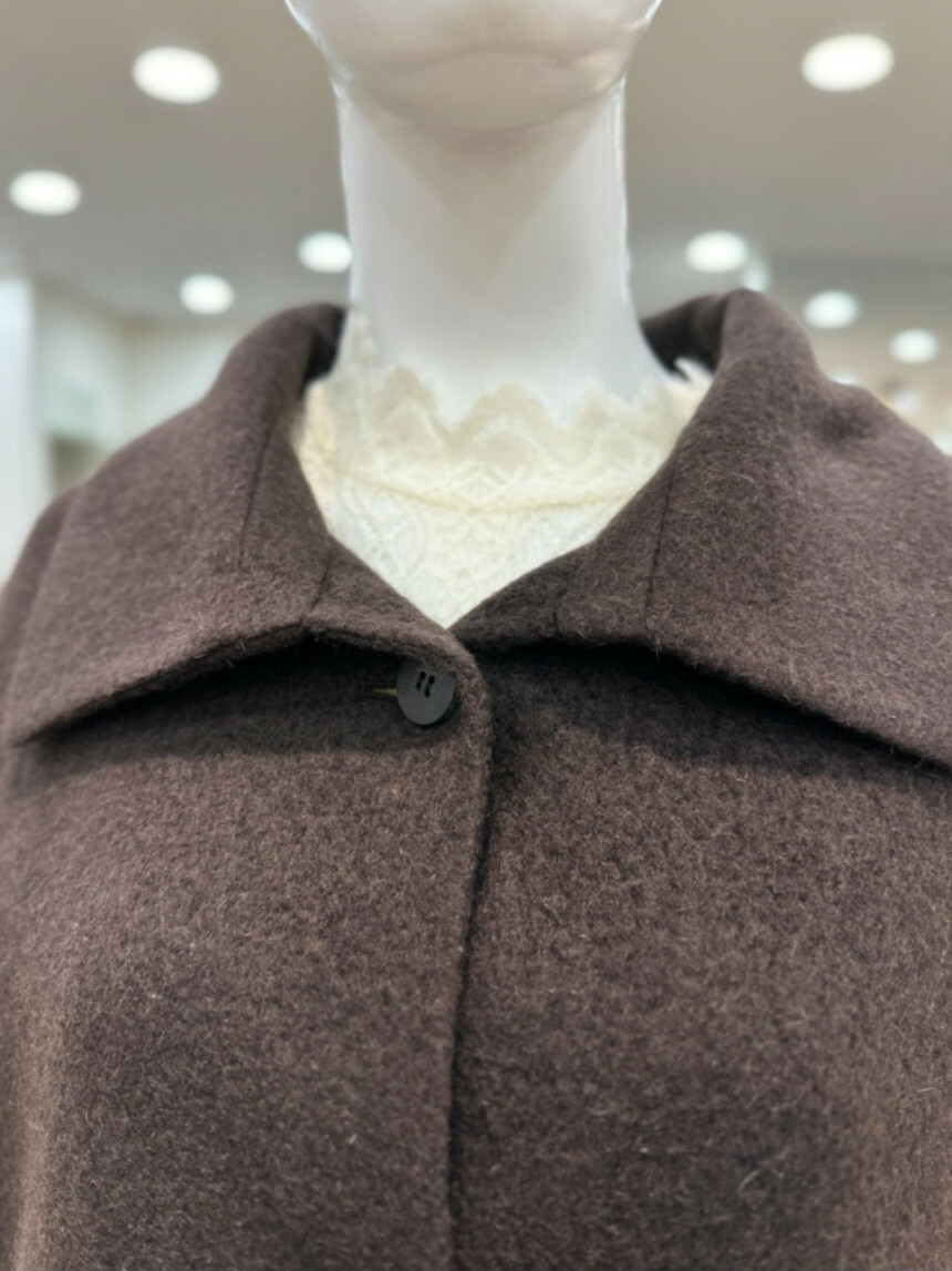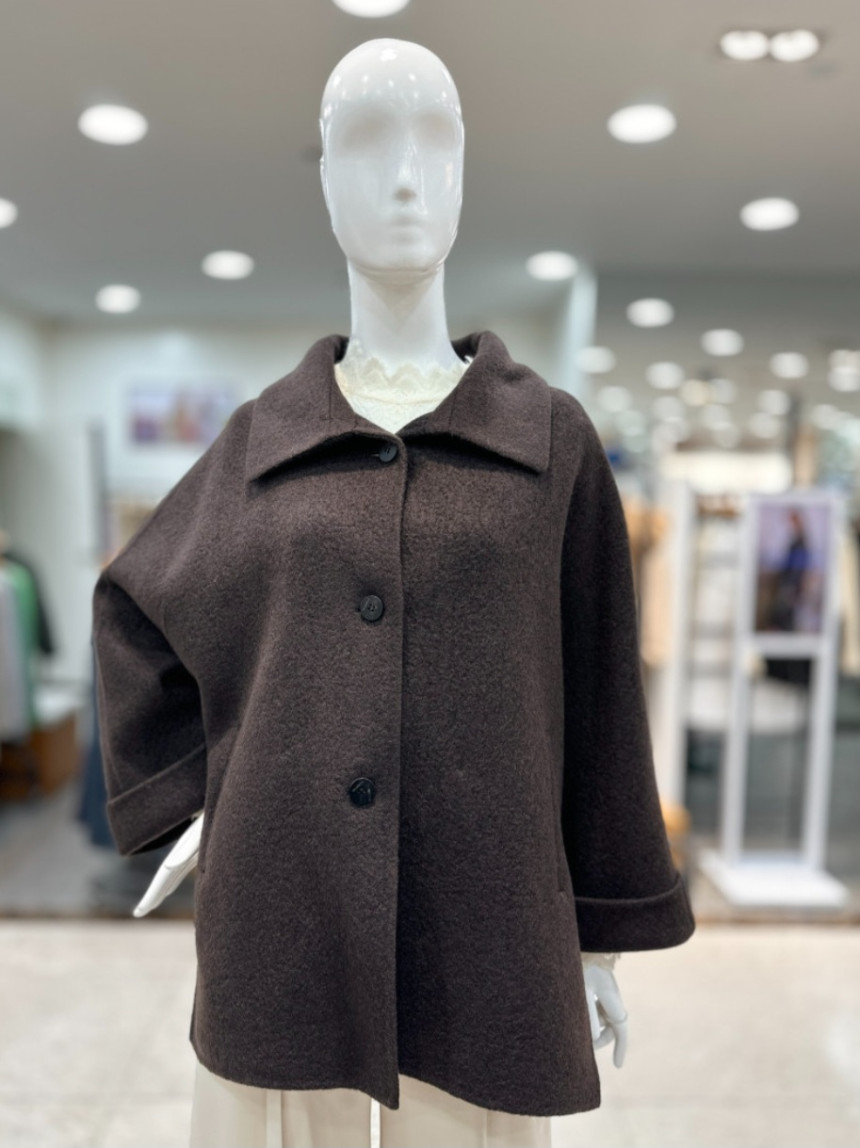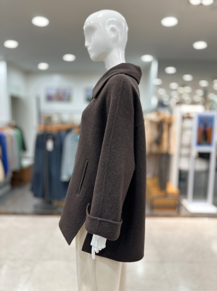 케이프 스타일로 루즈핏 긴팔 캐시미어100% 가벼운 하프코트입니다.