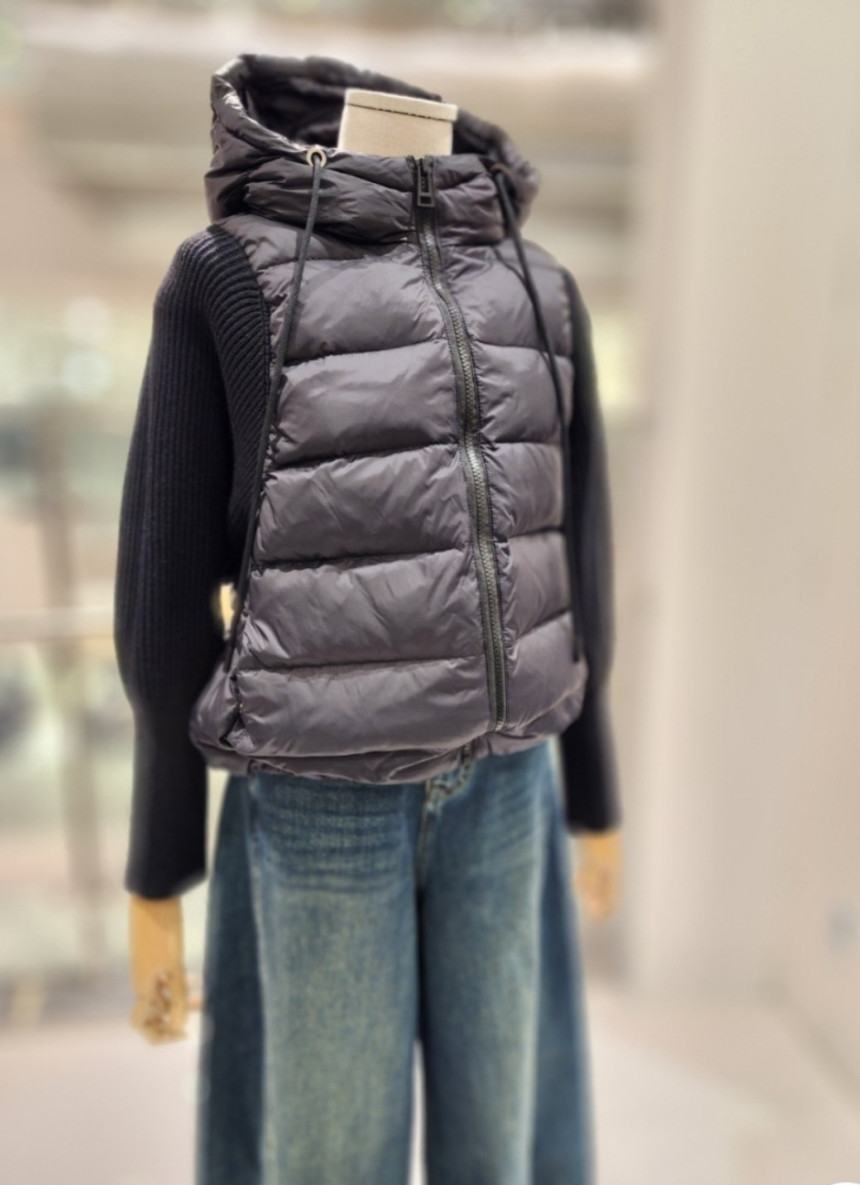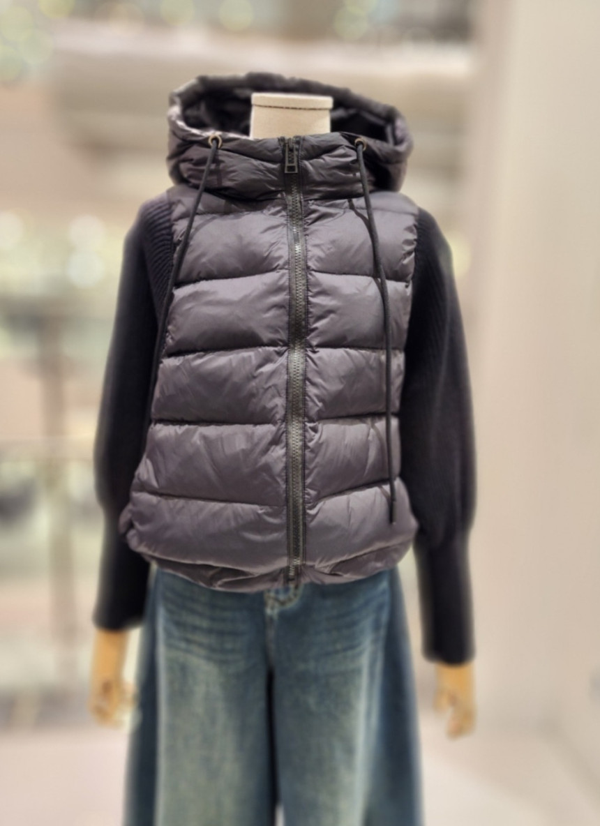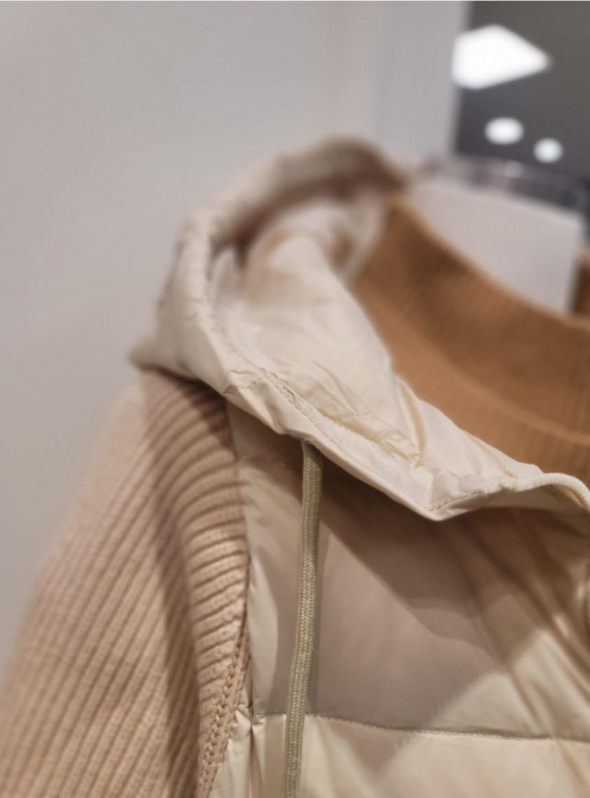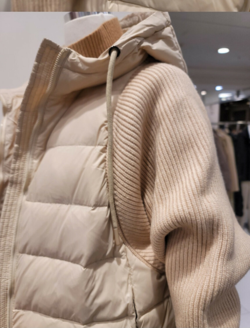 니트배색 후드 덕다운 점퍼