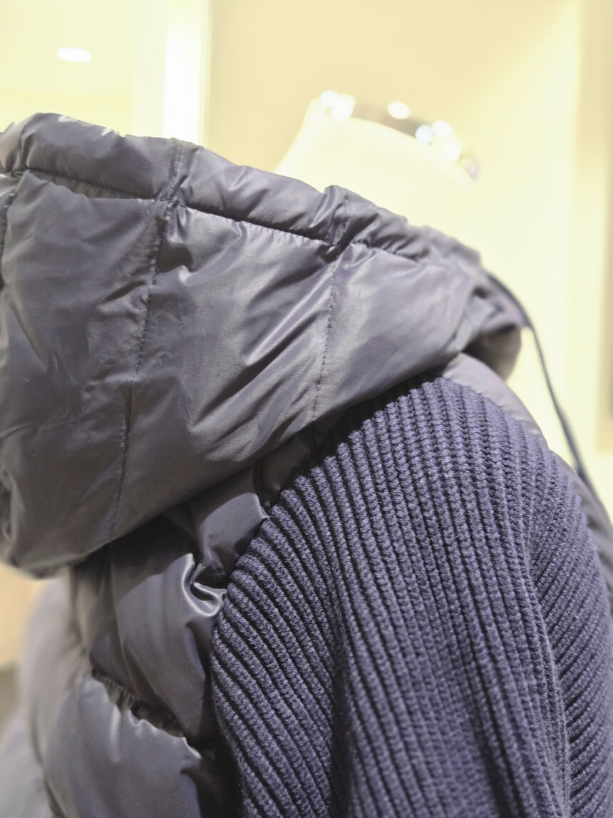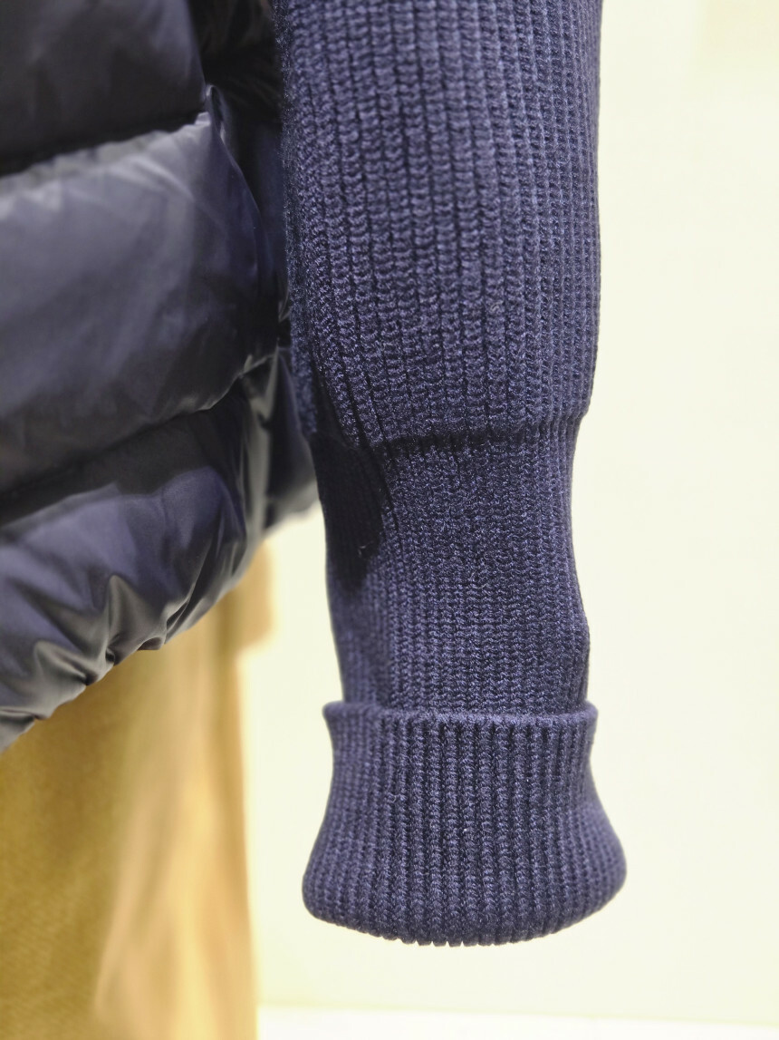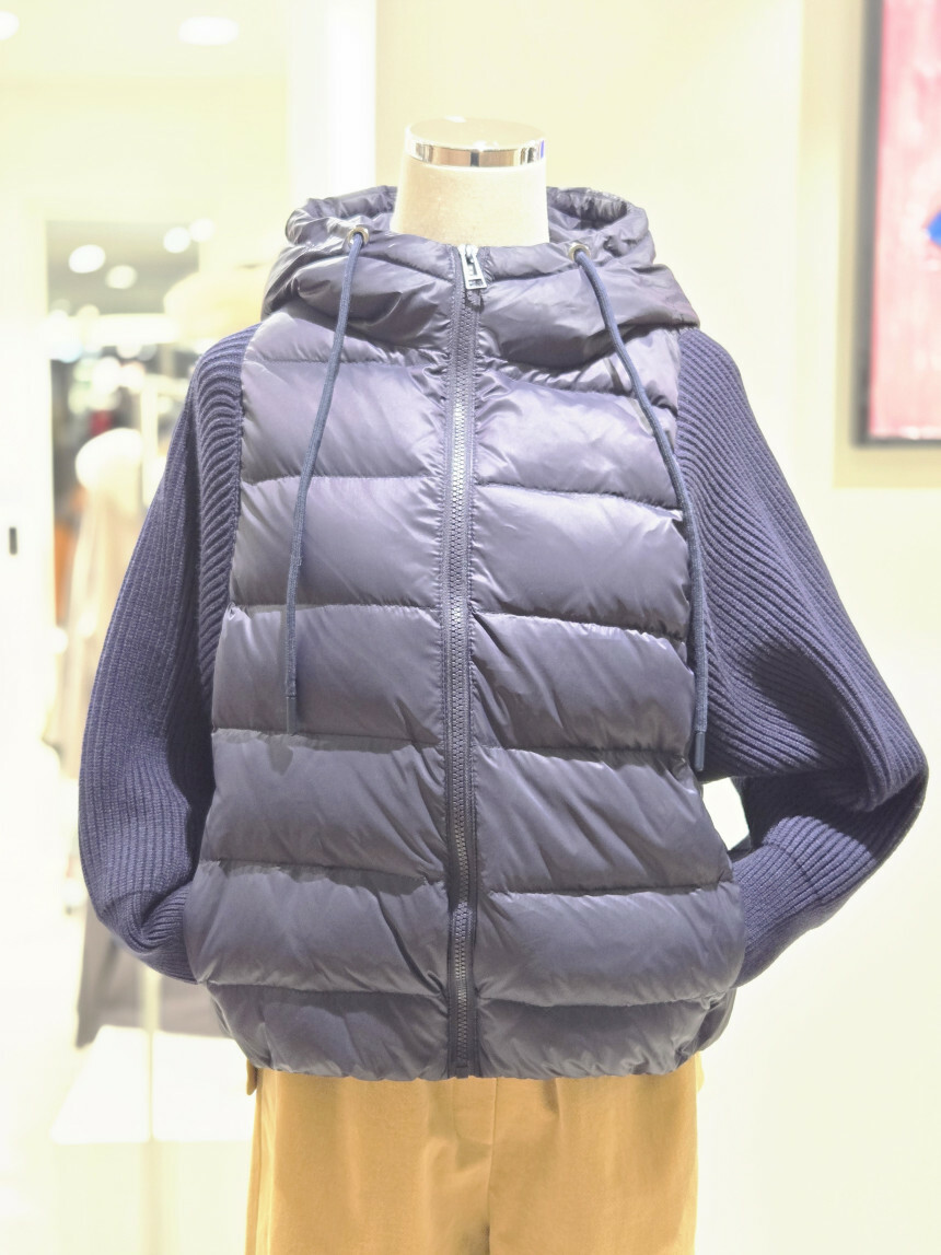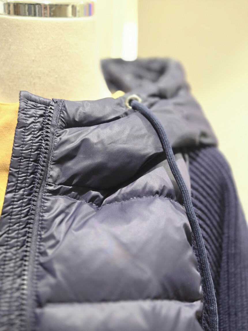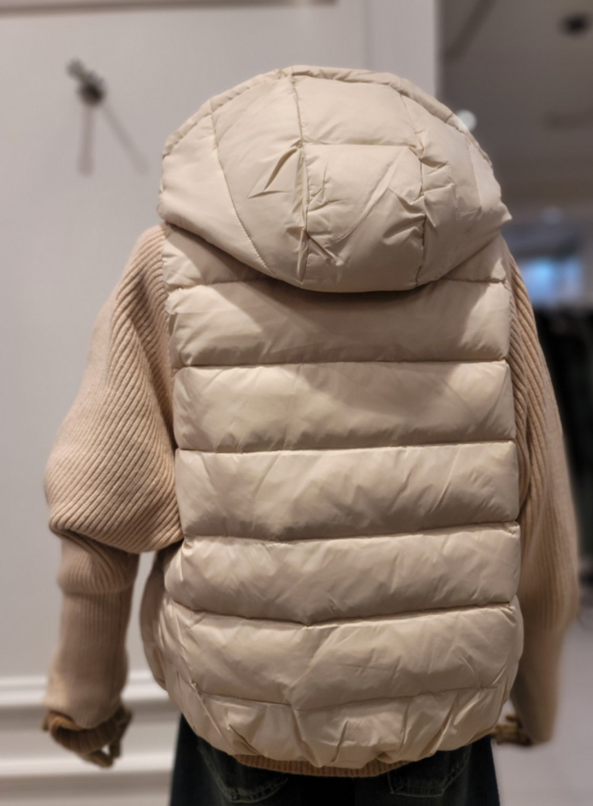 니트배색 후드 덕다운 점퍼